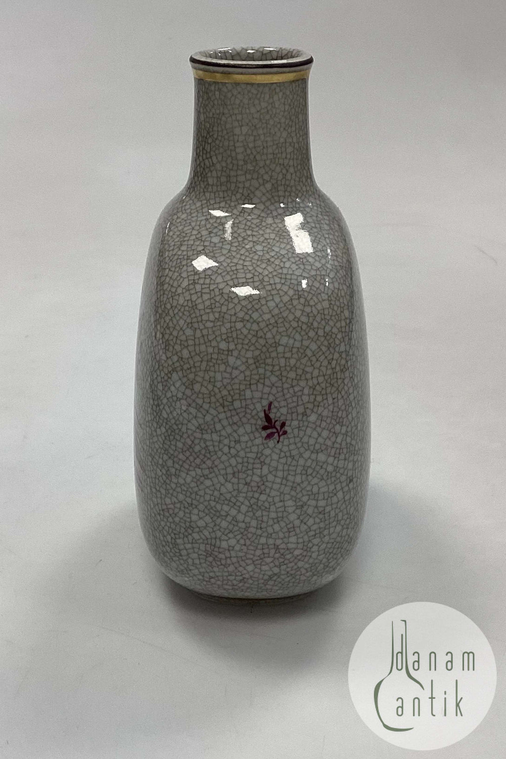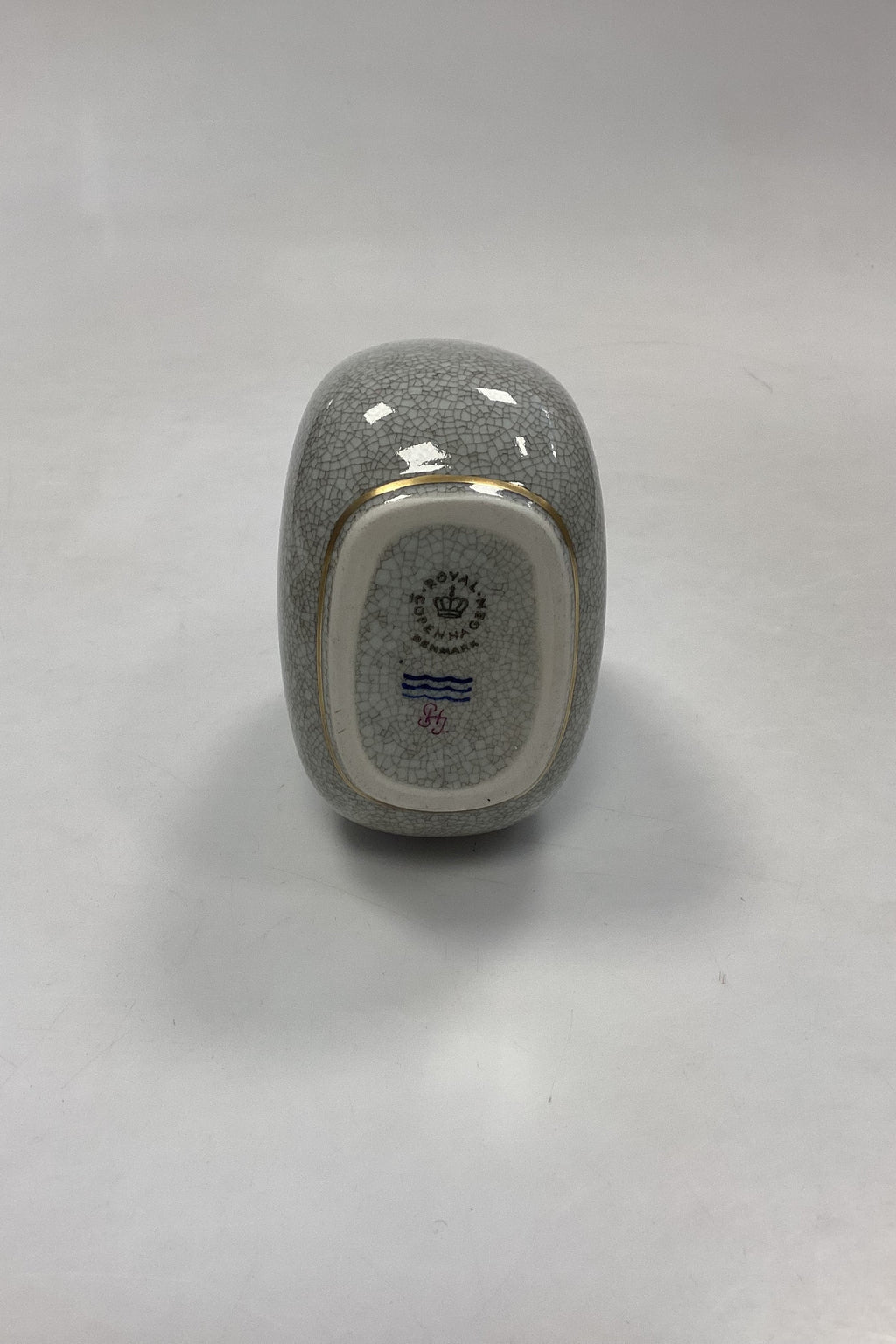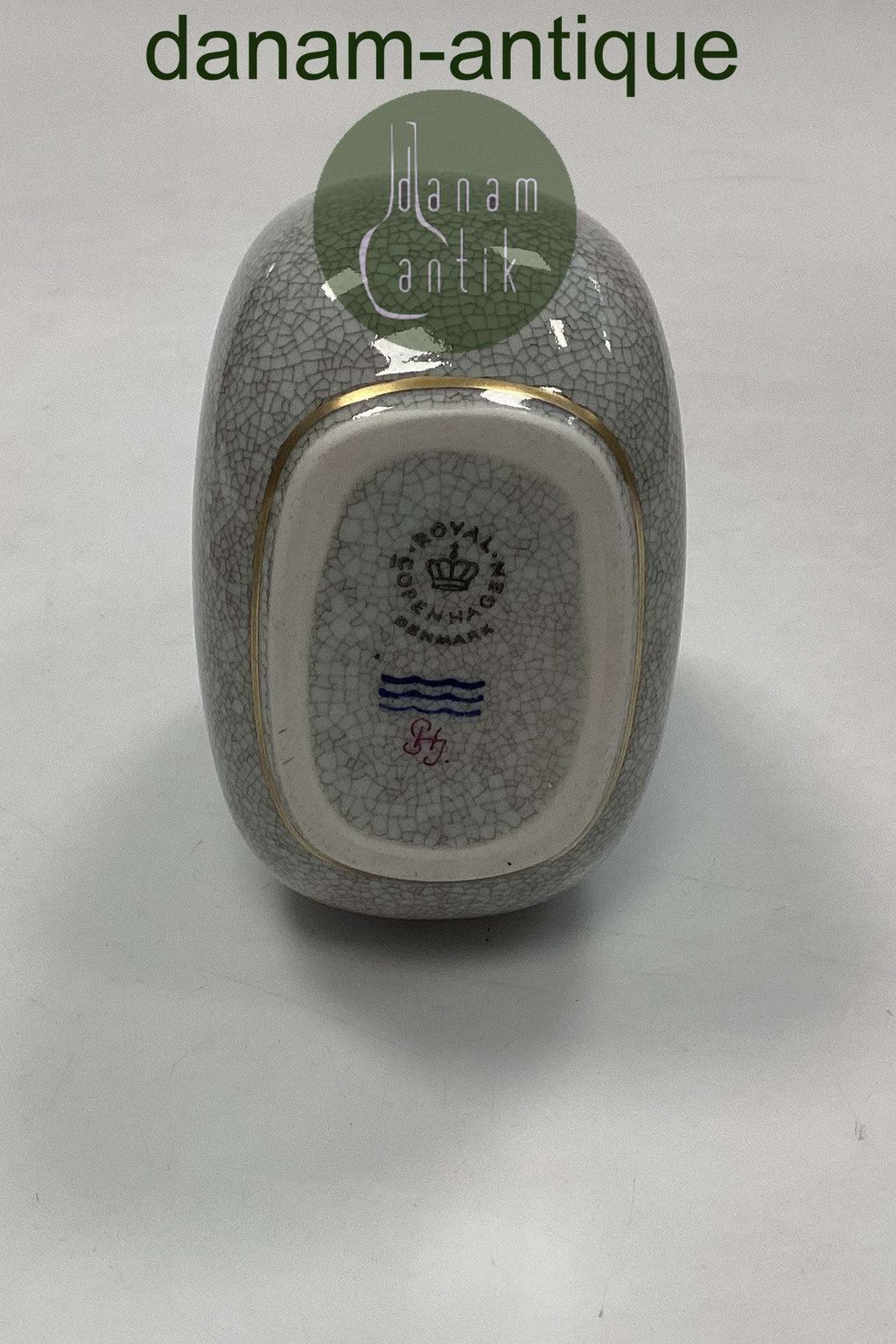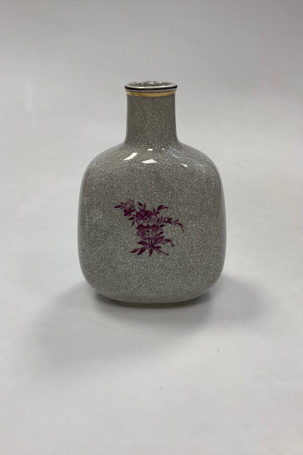 Royal Copenhagen Craquelé Vase Privatmalet. Motiv i fuchsia af landskab med borg og blomster. Signeret SHJ. Måler 14,5 cm / 5,70 in.