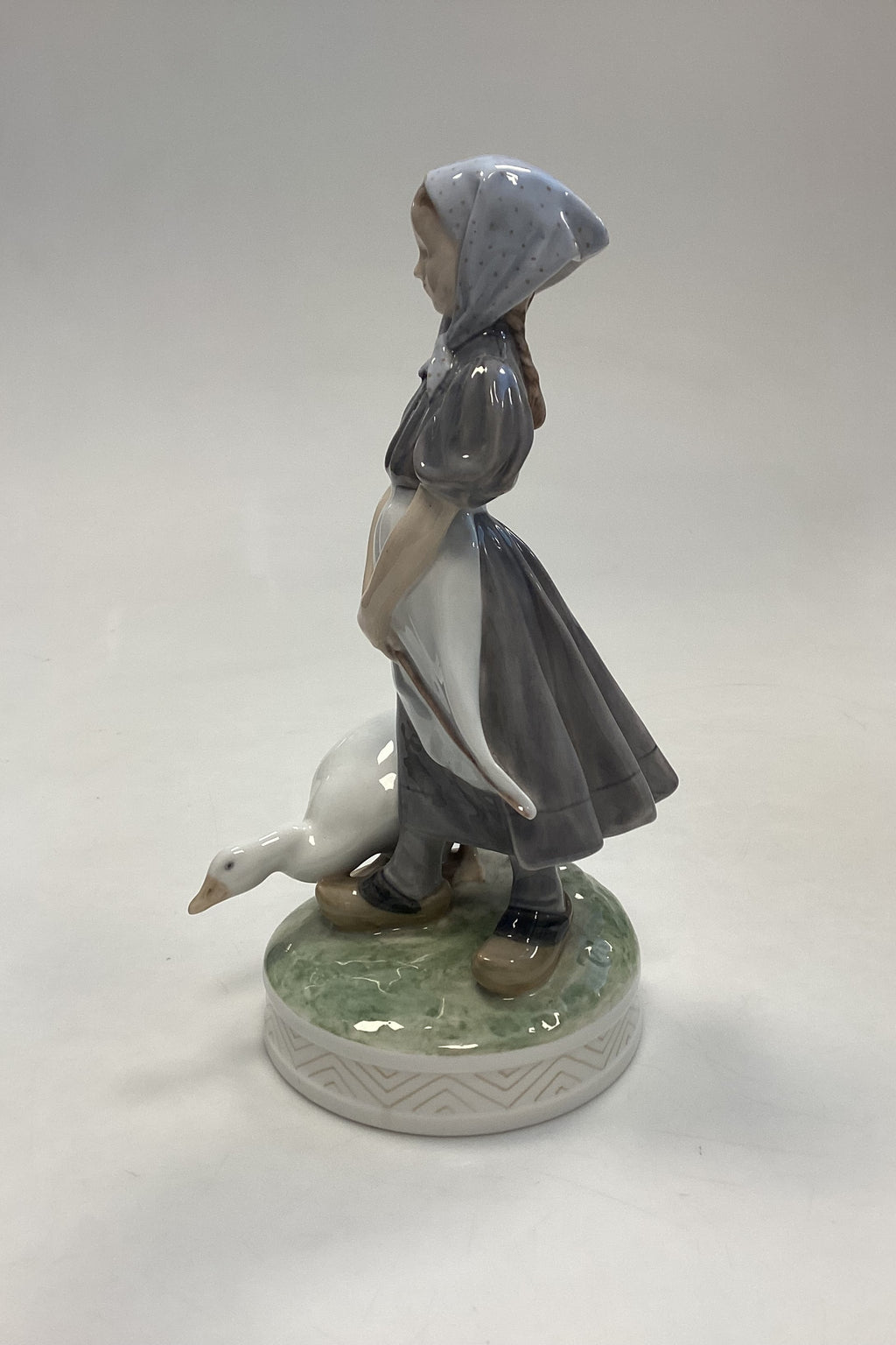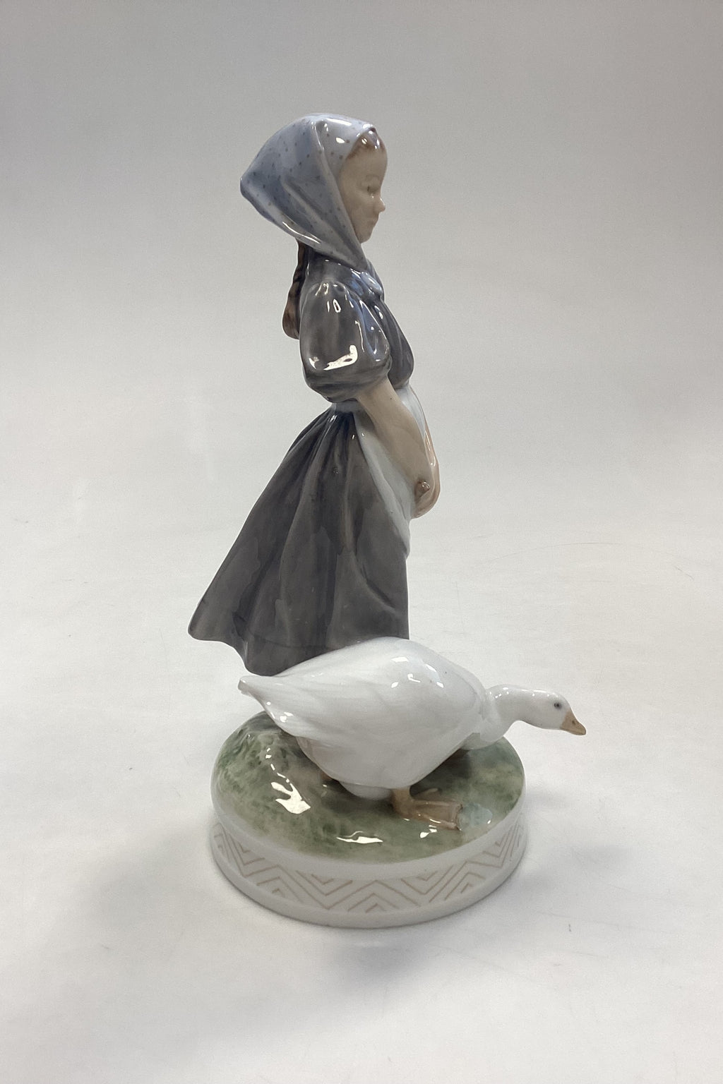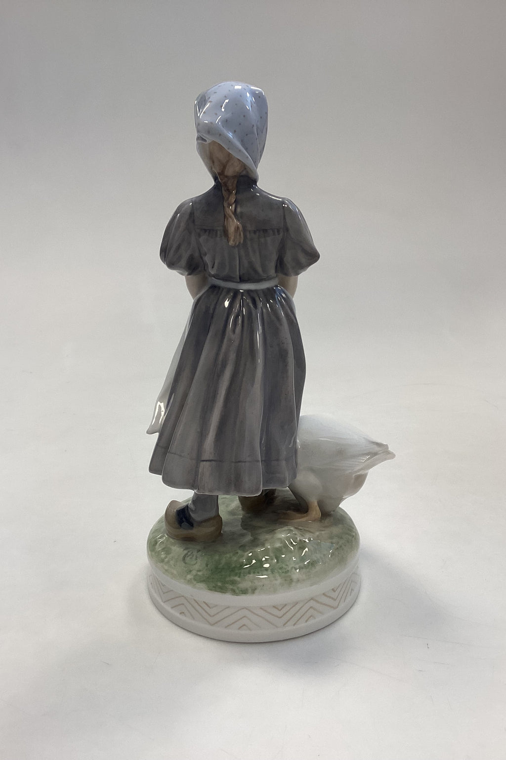 Royal Copenhagen Figur - Gåsepige No. 527. Designet af Christian Thomsen i 1903. Tidlig figur i sarte farver.