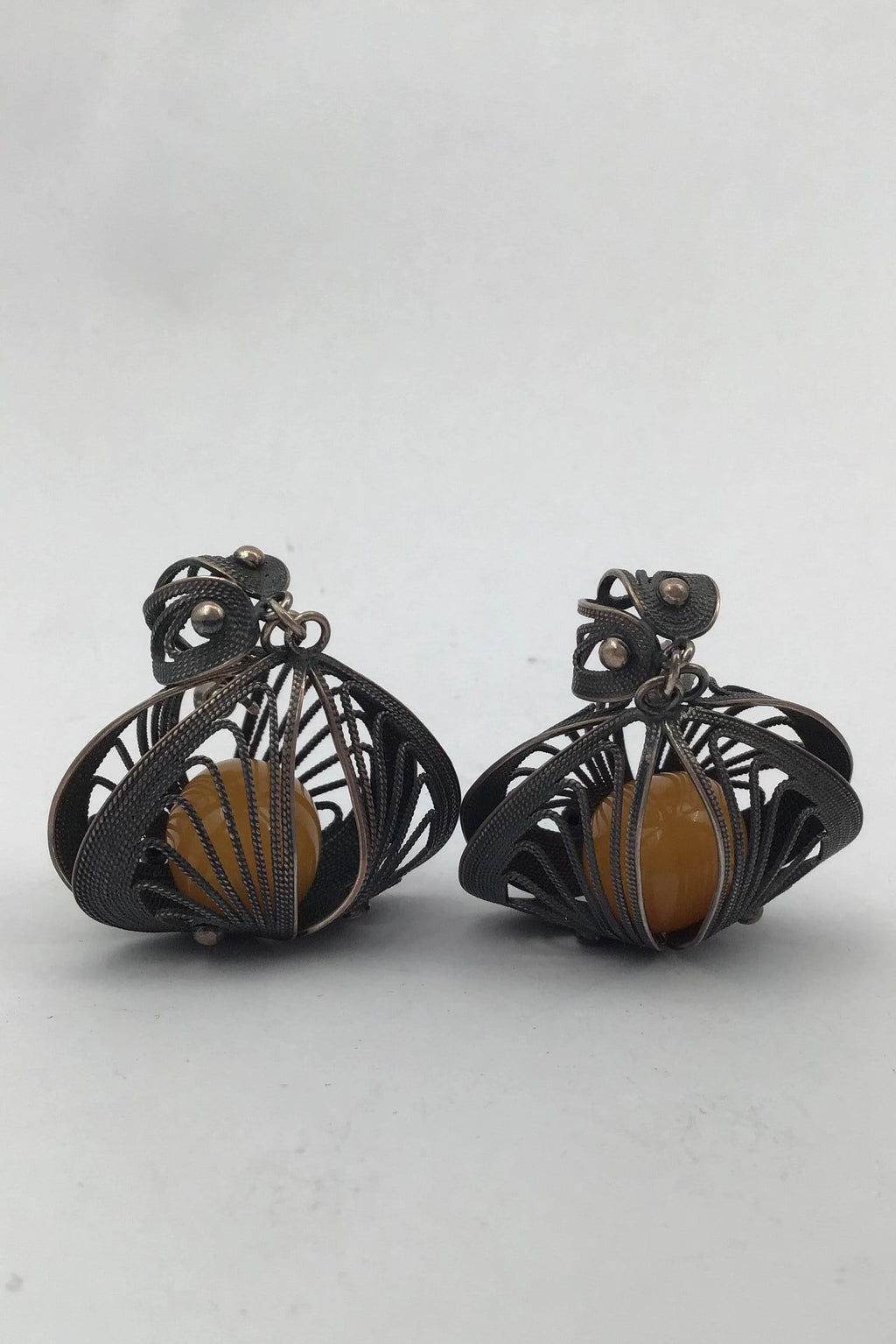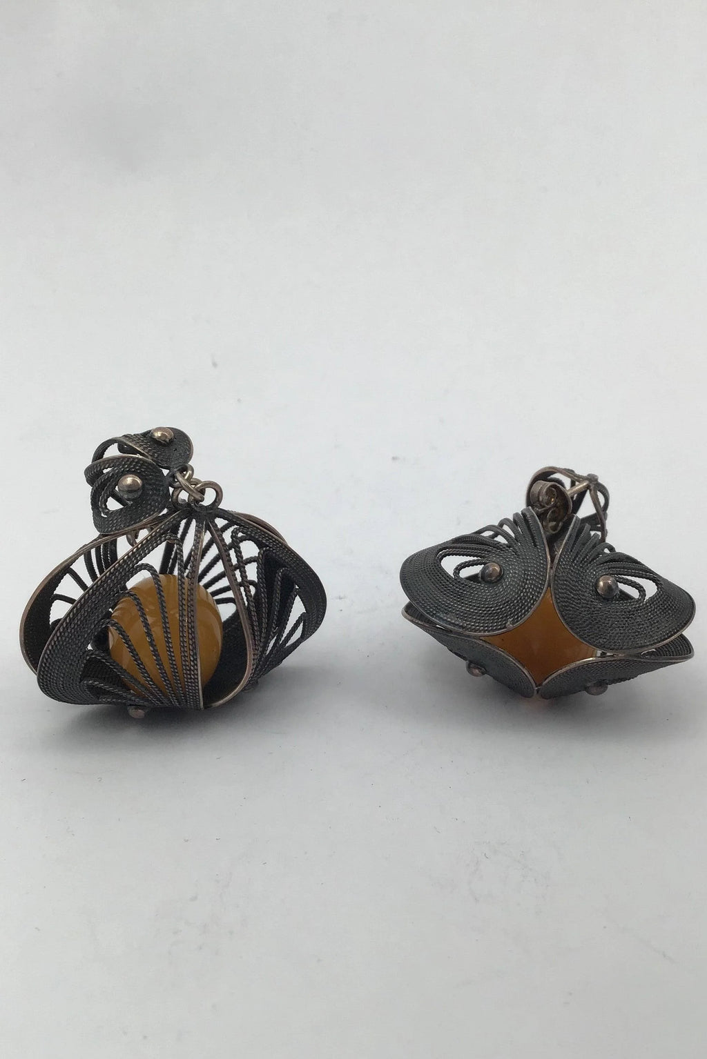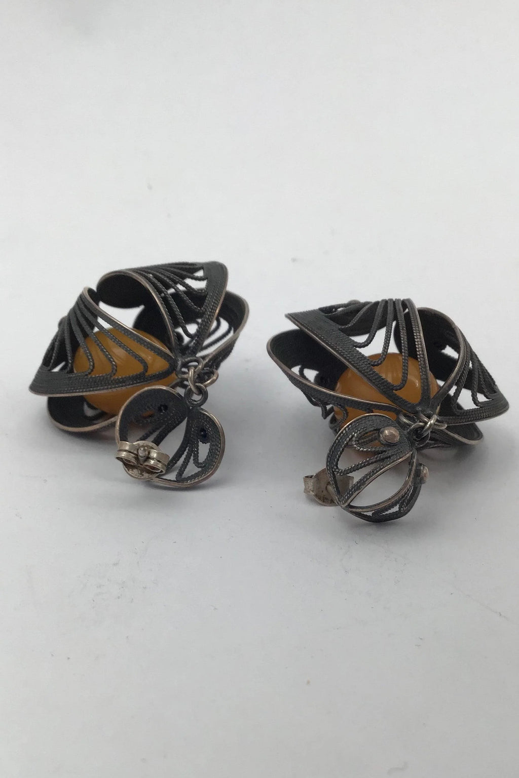 Filigrane Silber Ohrstecker mit Bernstein Maßnahmen 4,2 cm x 3,3 cm (1,65 Zoll x 1,30 Zoll) Gesamtgewicht 15,7 gr / 0,55 Unze (ungestempelt)