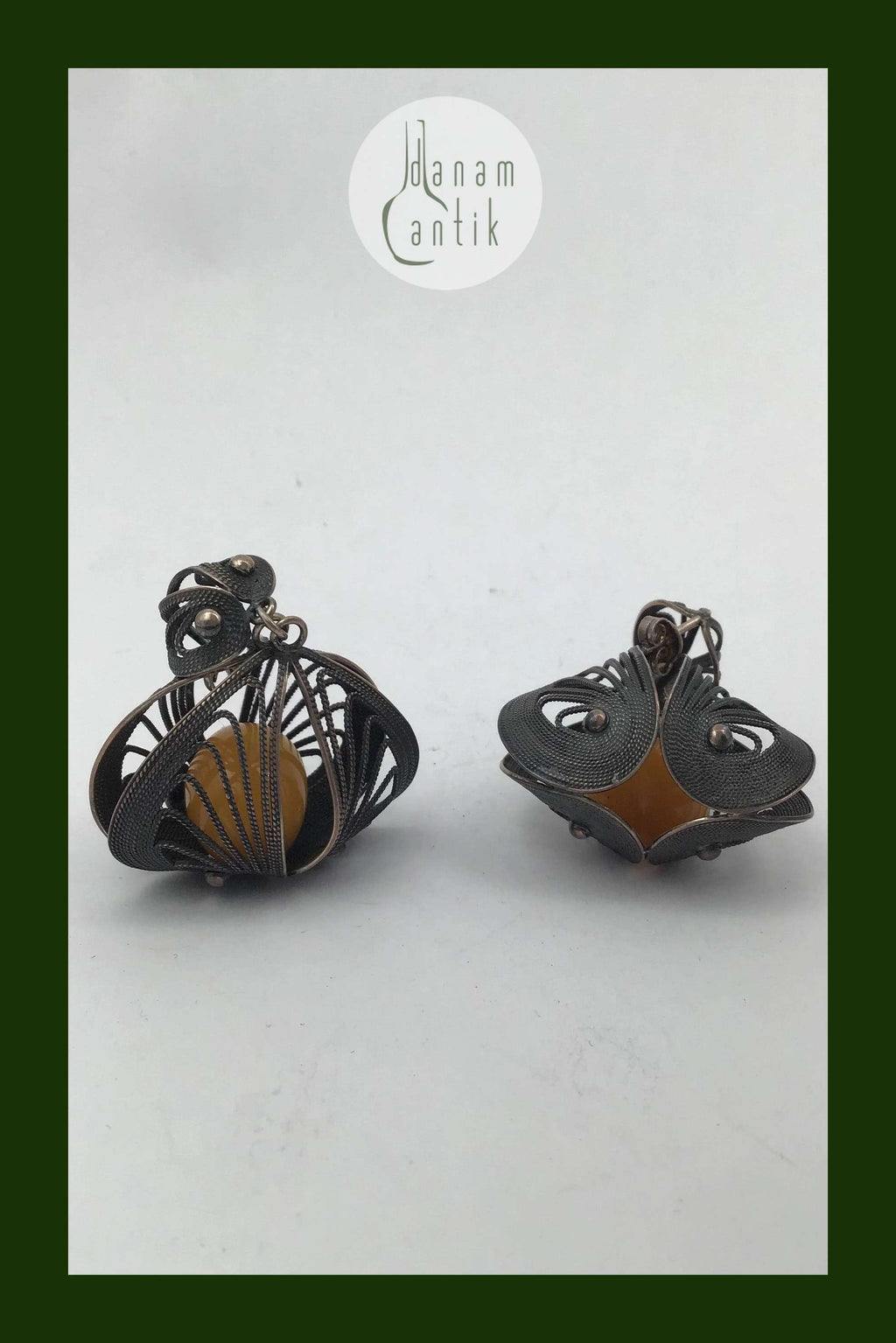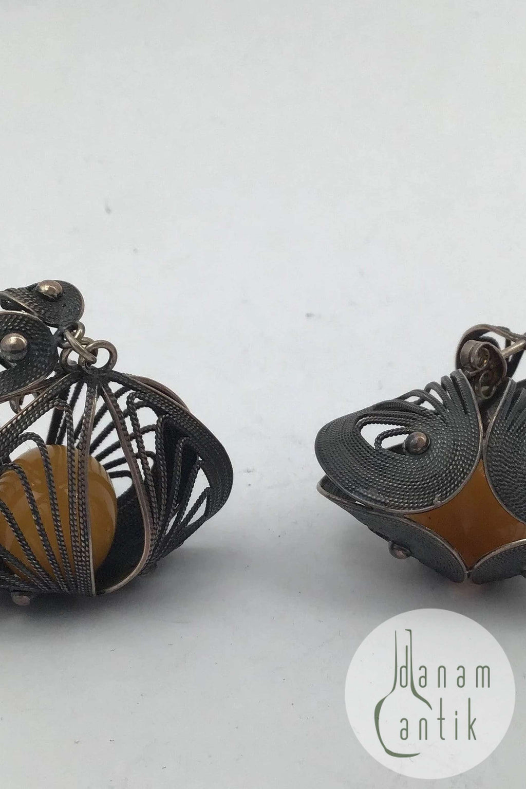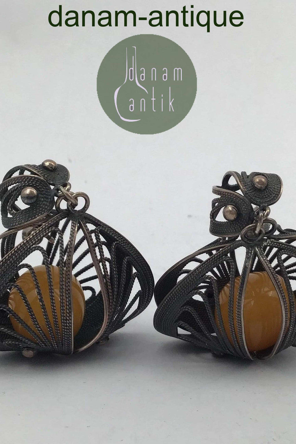 Filigrane Silber Ohrstecker mit Bernstein Maßnahmen 4,2 cm x 3,3 cm (1,65 Zoll x 1,30 Zoll) Gesamtgewicht 15,7 gr / 0,55 Unze (ungestempelt)