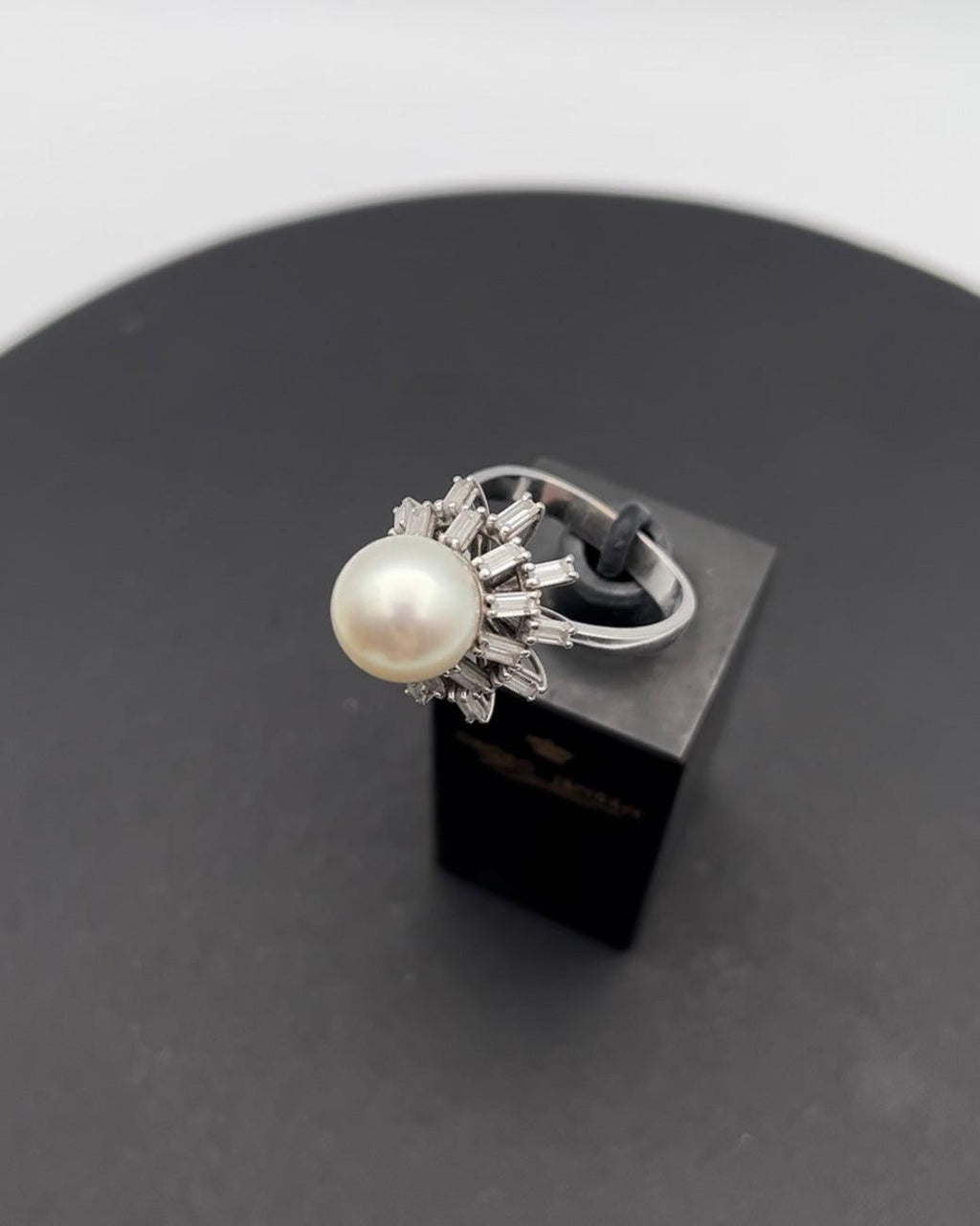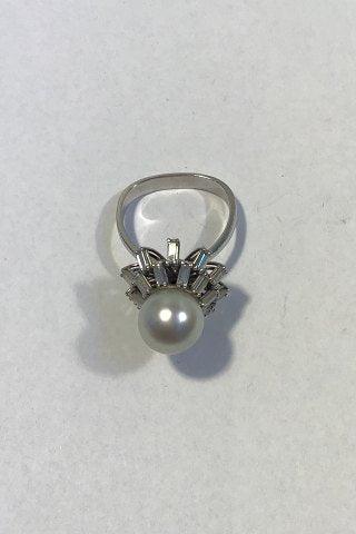 Georg Jensen & Wendel 18 K Weißgold Ring mit Perle und Diamanten 1,4 ct