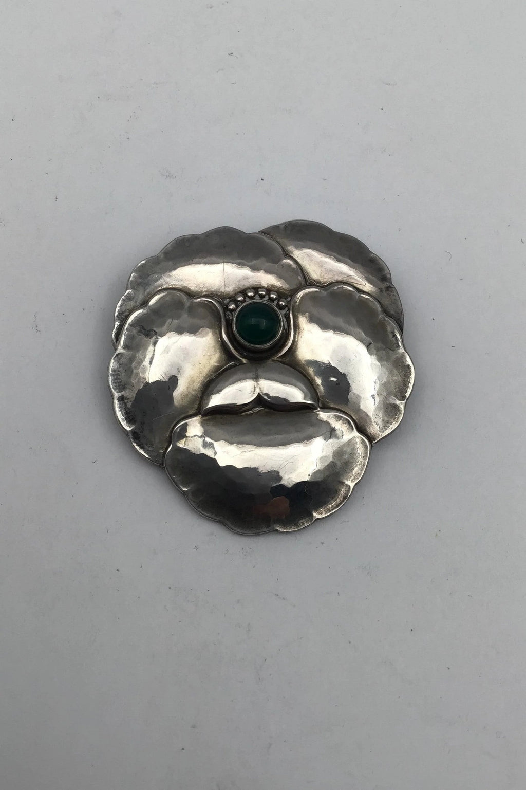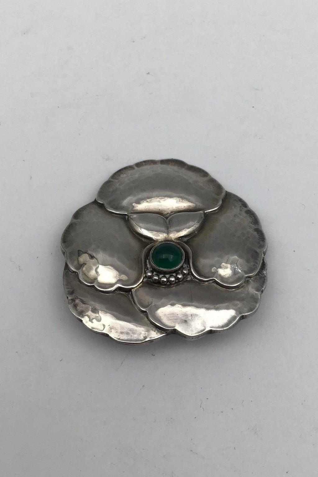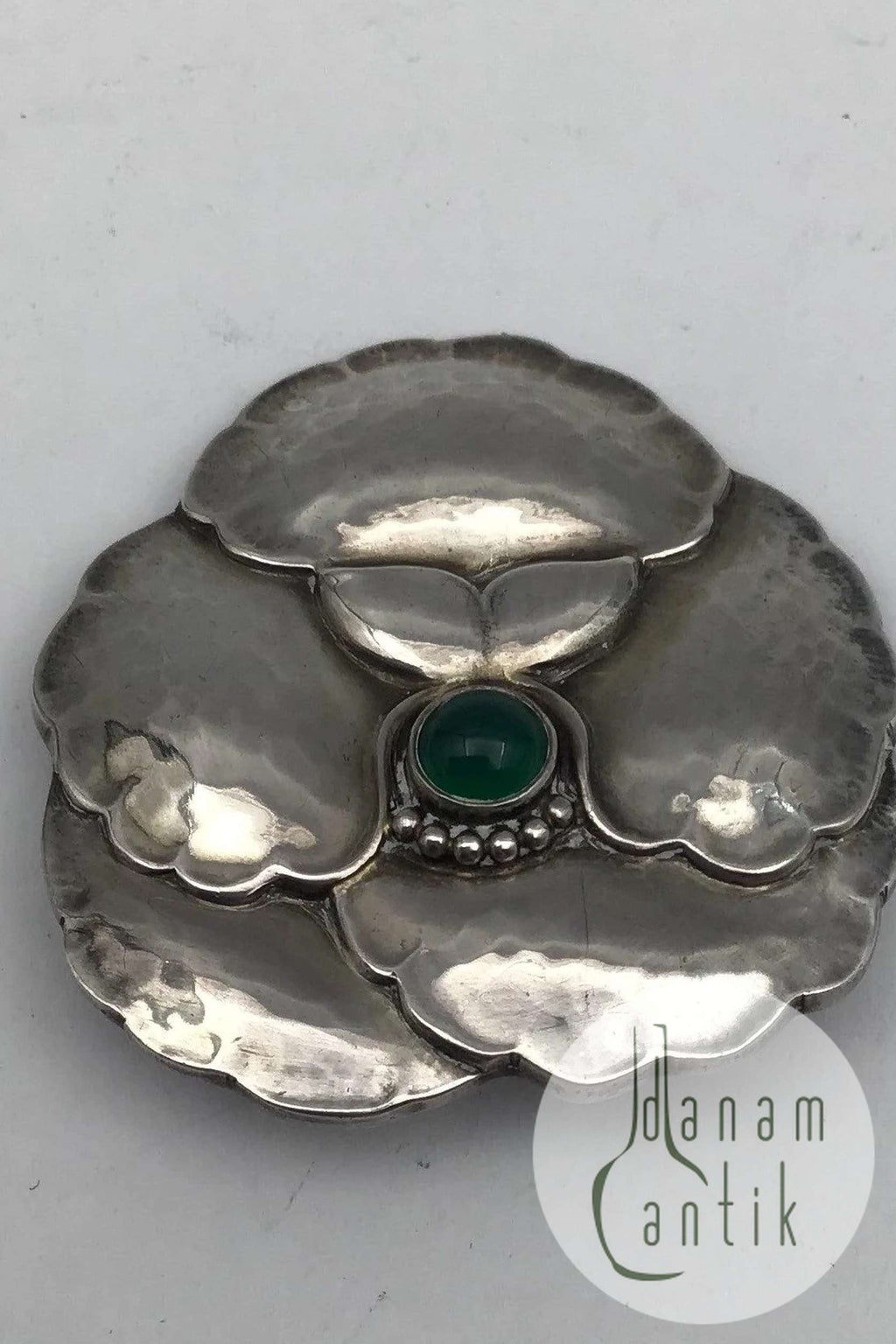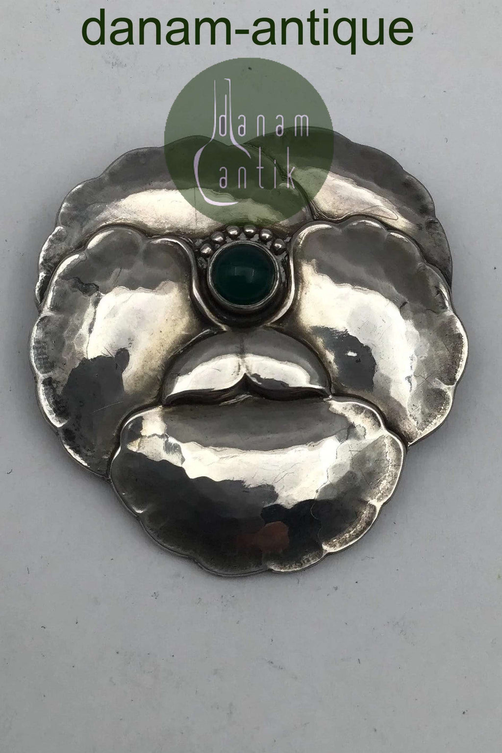 Georg Jensen Sterling Silber Brosche Nr. 113 (Grüner Achat) Maßnahmen Diam 4 cm (1,57 Zoll) Gewicht 13,5 gr (0,48 Unze)