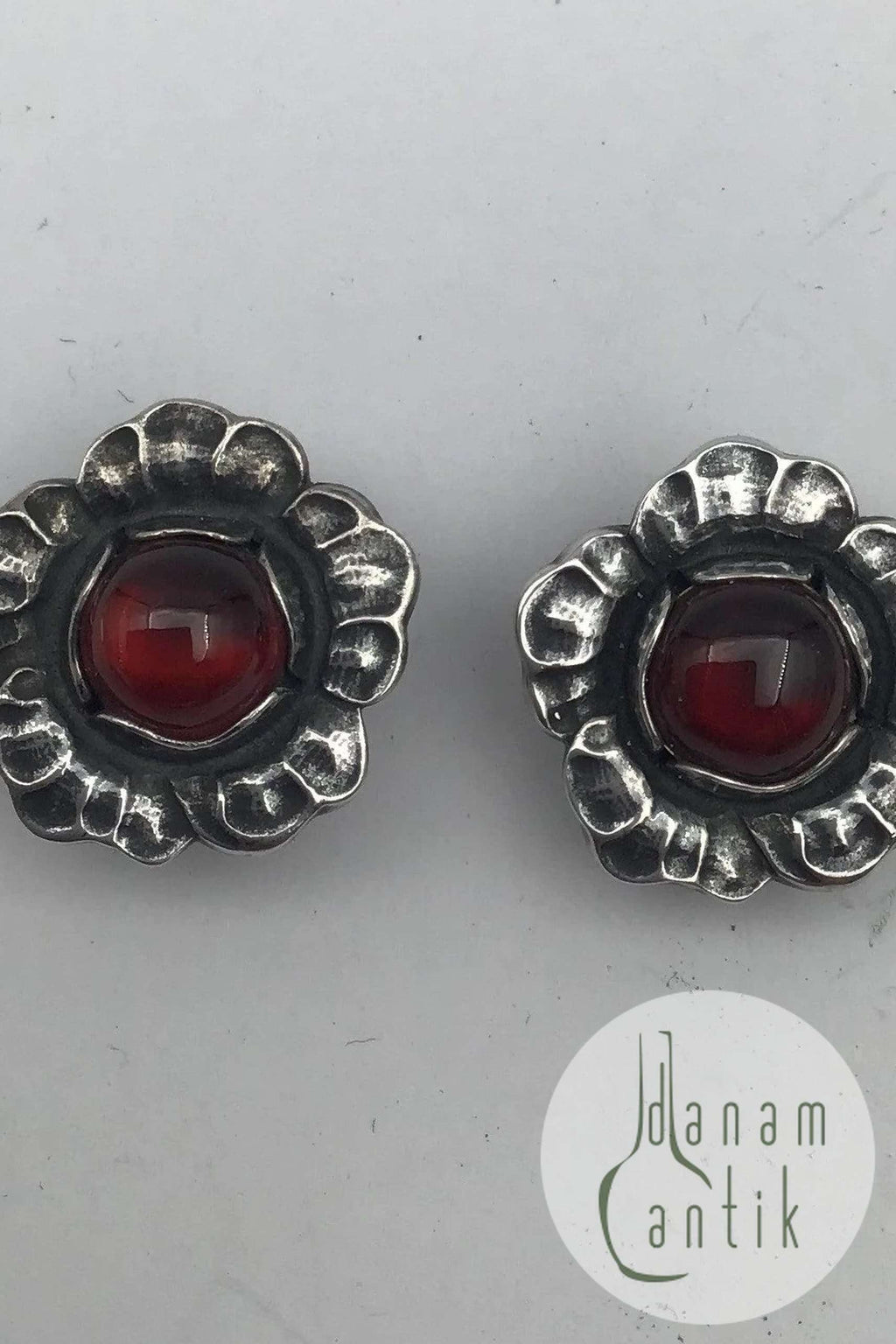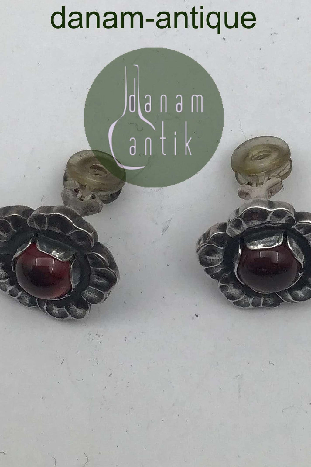 Georg Jensen Sterling Silber Ohrclip Ohrringe Jahr Schmuck 2002 Karneol Maßnahmen Diam 1,7 cm (0,66 Zoll) Gesamtgewicht 13,3 gr / 0,47 Unzen