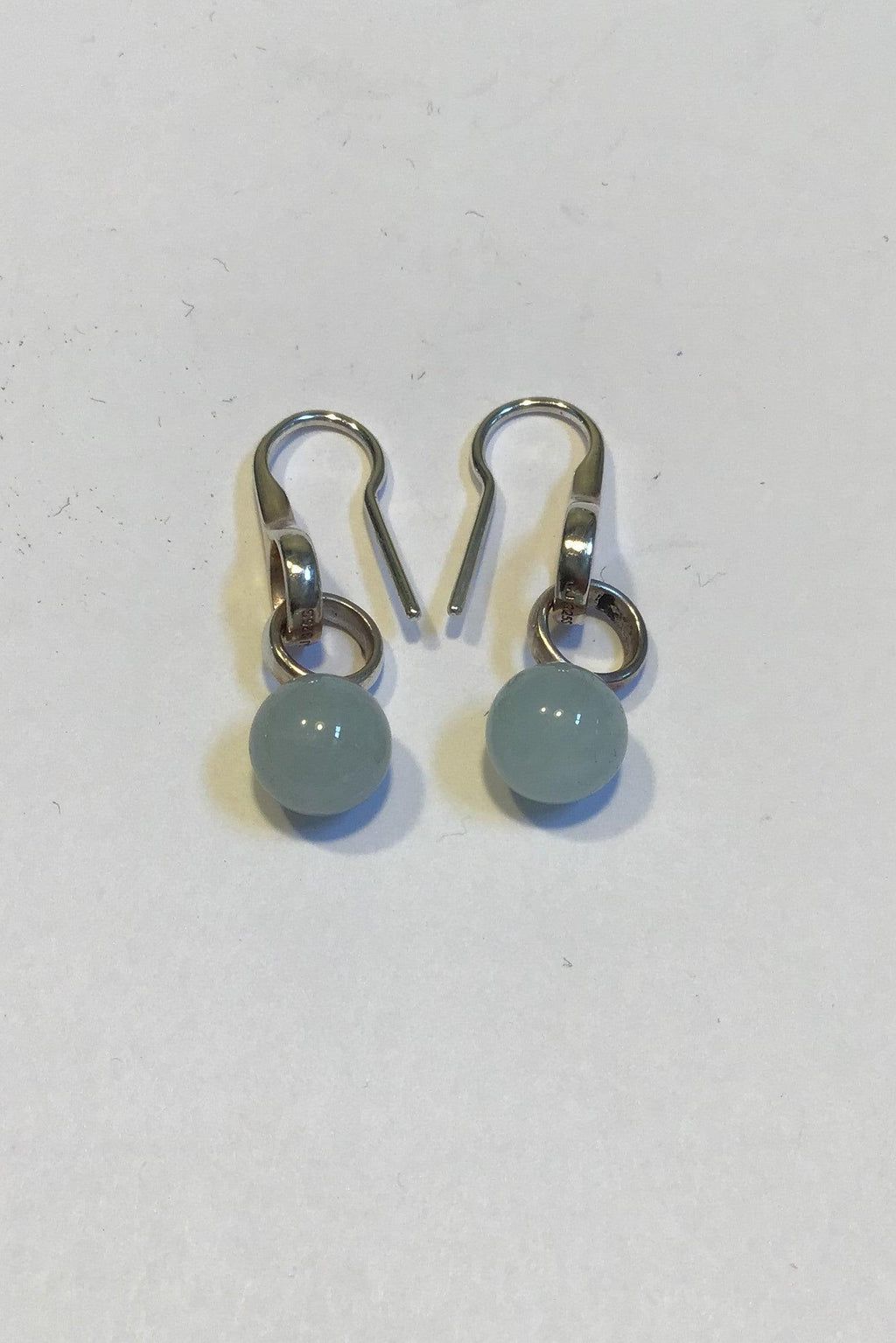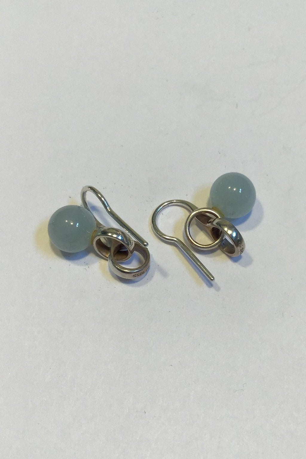 Georg Jensen Sterling Silber Ohrringe Kugel Aquamarin Maßnahmen 3,2 cm(1 17/64 in) Gesamtgewicht 4 gr/0.14 oz