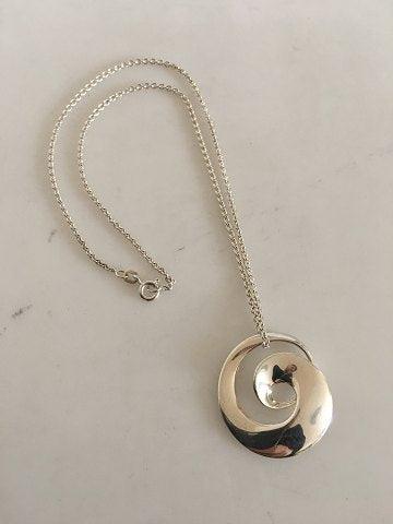 Georg Jensen Sterling Silber Torun Halskette Nr. 443. Der Durchmesser des Anhängers beträgt 3 cm. Die Kette misst 42 cm L. Wiegt 9 Gramm.