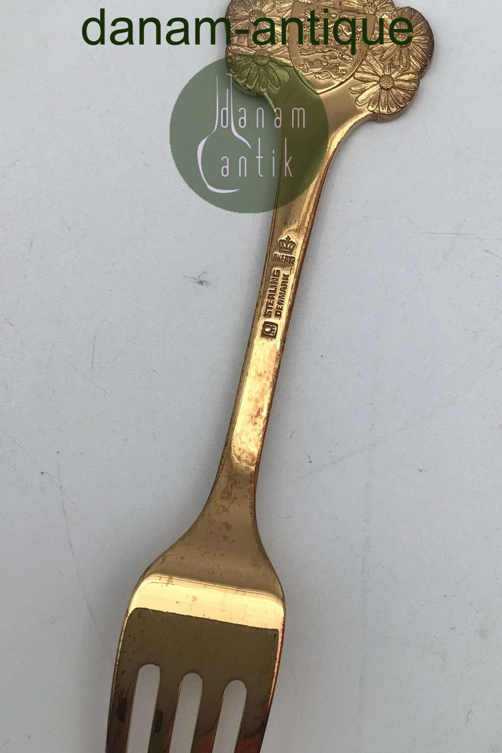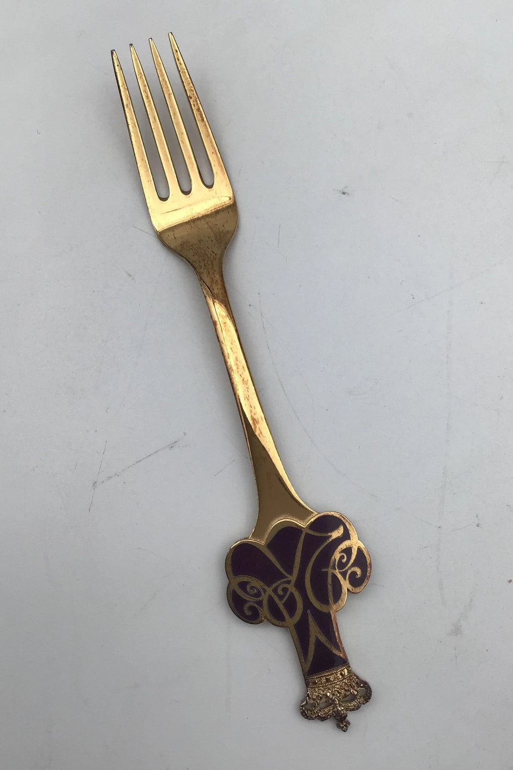 P. Hertz Vergoldetes Sterling Silber Gedenkgabel Regierungsjubiläum 1997 Maße 15,5 cm (6,10 Zoll)