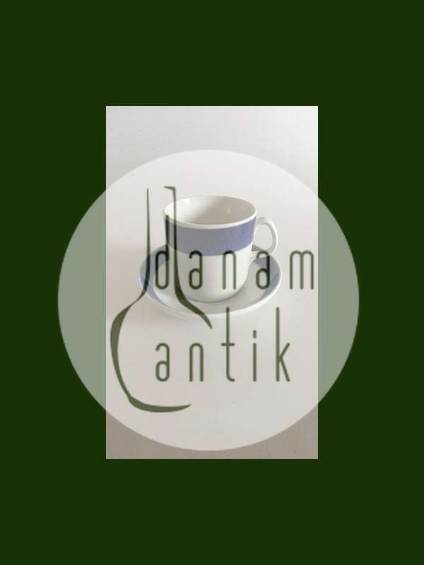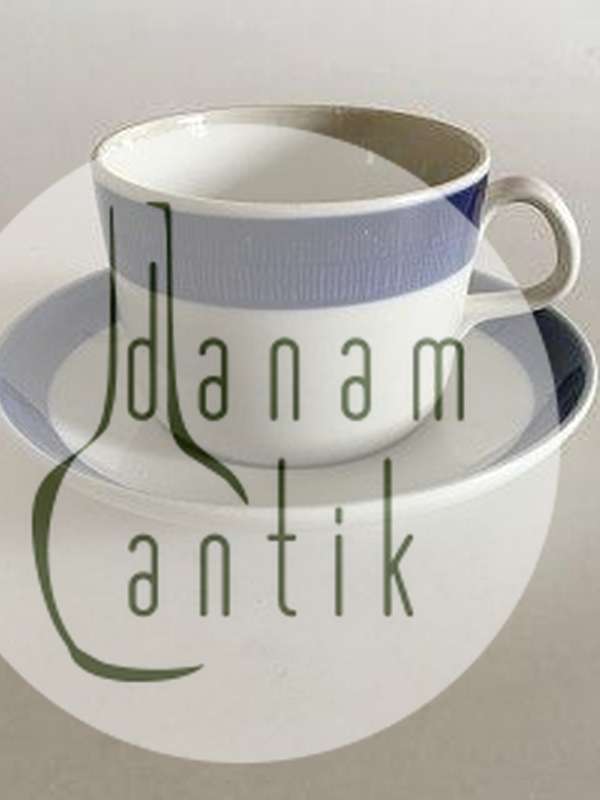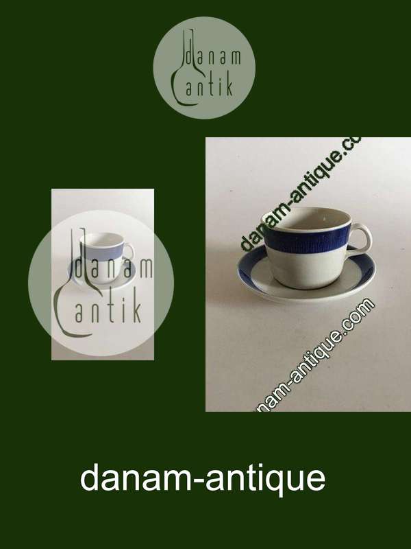 Rörstrand Blå Koka Tekop og Underkop. Måler kop: 6,6 cm x 9 cm dia. underkop: 15,2 cm