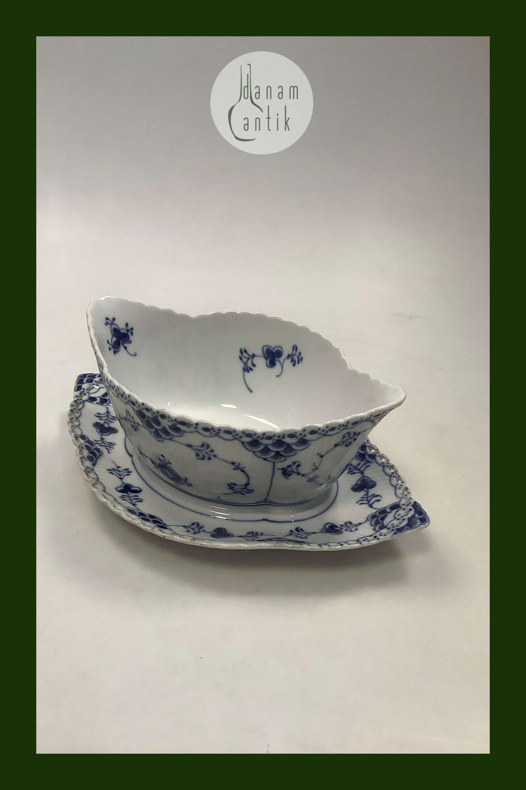 Royal Copenhagen Muschelmalet Vollblond Soßenschüssel mit Untertasse Nr. 1105. 24cm. 9.45 inch