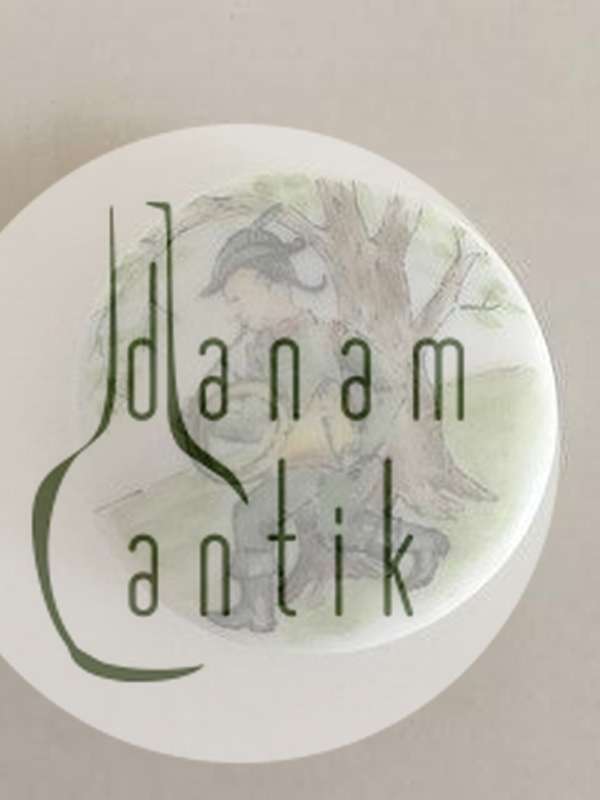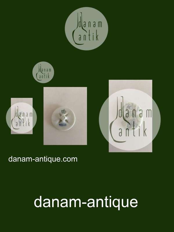 Königlicher Kopenhagener Porzellanknopf mit handgemaltem Musiker-Motiv. 3 cm Durchmesser.