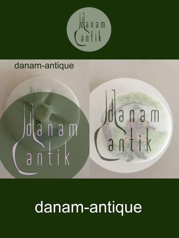 Königlicher Kopenhagener Porzellanknauf mit handgemaltem Musiker-Motiv. 3 cm Durchmesser.