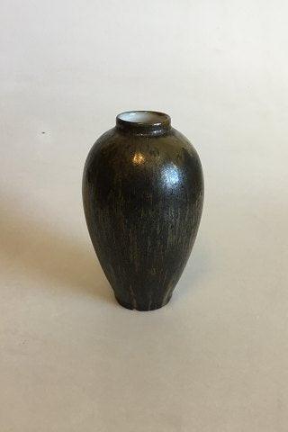Royal Copenhagen Vase mit Glasur in Brauntönen. Entworfen von Carl Frederik Ludvigsen. Note 710 und 2. Klasse. Maße 14 cm