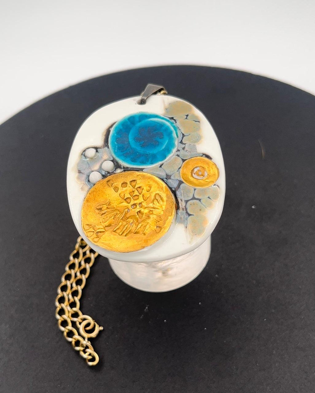 Royal Copenhagen Pendelleuchte aus Porzellan entworfen von Nils Thorson. Sterlingsilber von Anton Michelsen. Maße: 6 cm, Kette: 60 cm