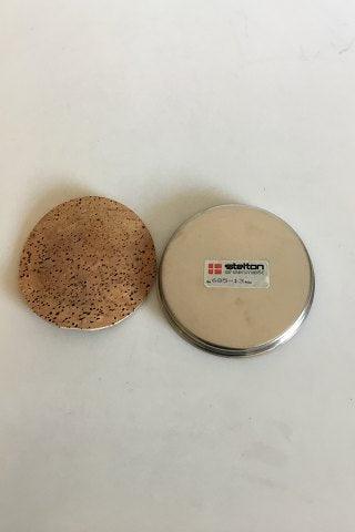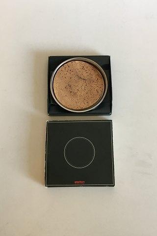 Stelton Edelstahl-Flaschenablage mit Korkablage. Maße: 13 cm Durchmesser. Im Originalkarton. Korkenschale leicht schief