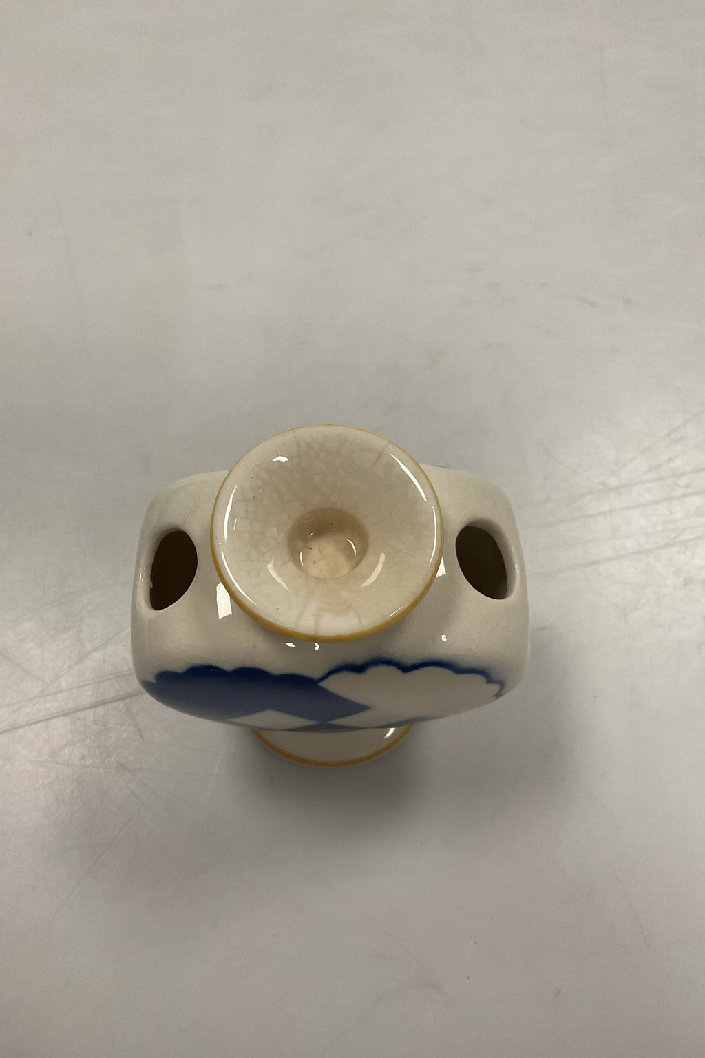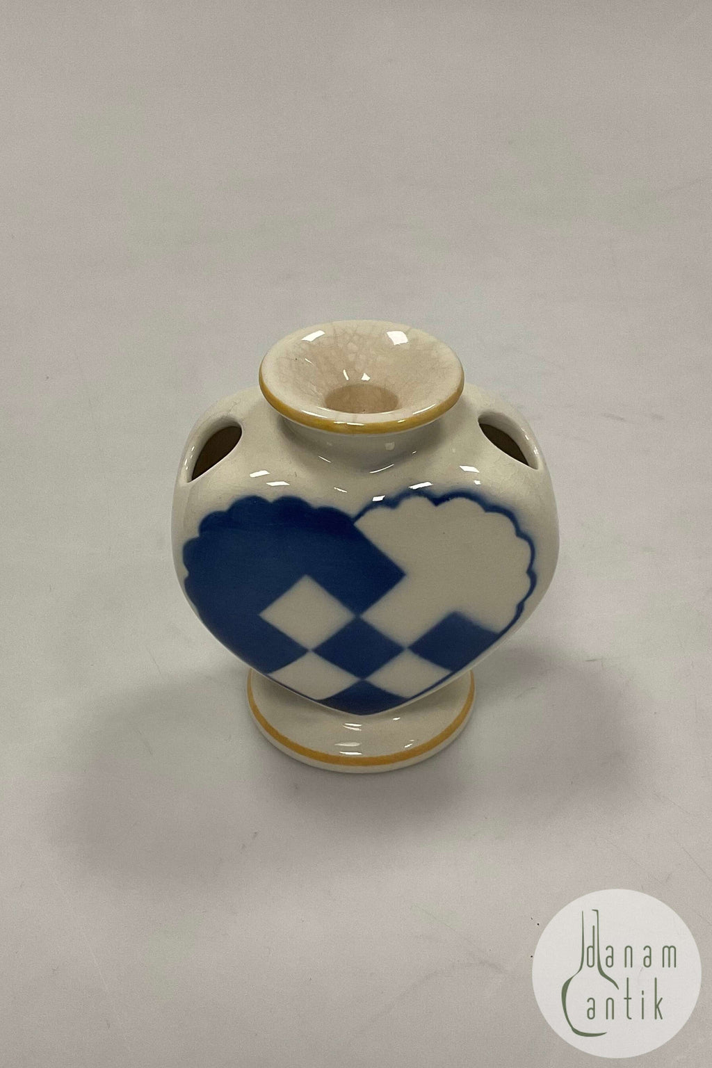 Aluminia Christmas Heart Candleholder/Vase in Blue. Small cracks. Measures 7,5 cm / 2.95 inch.