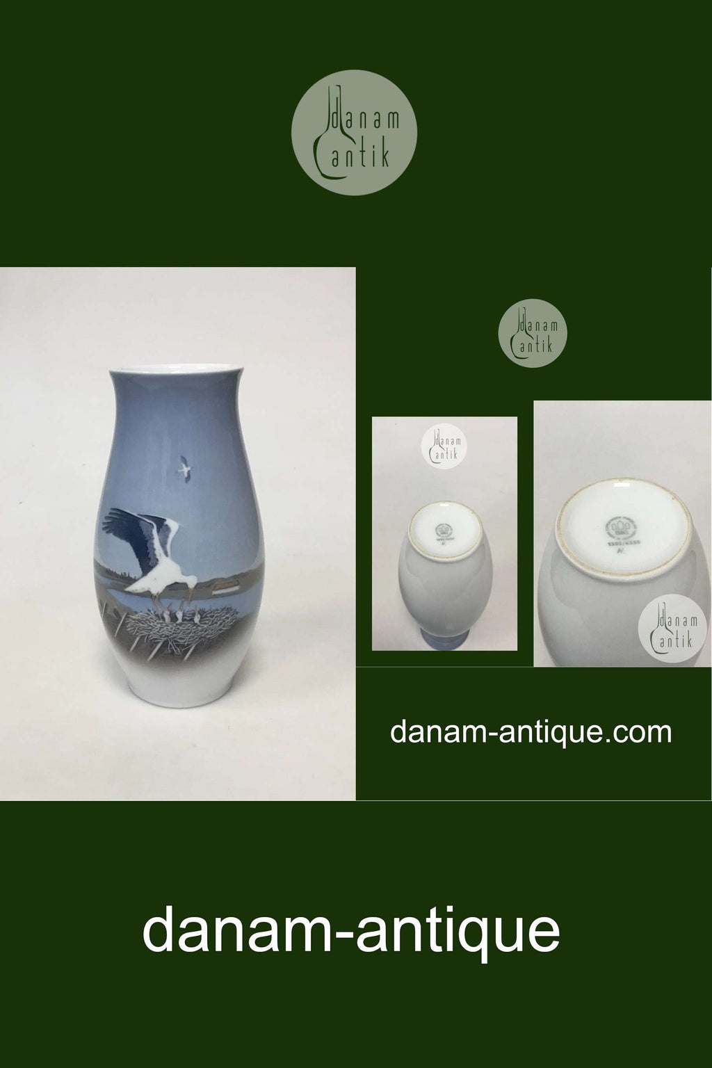 Bing & Grondahl Art Nouveau Vase with storked No 1302/6250. Measures 21 cm (8 17/64 in.)