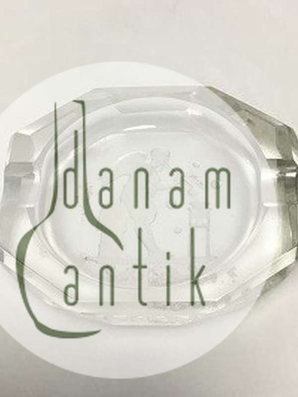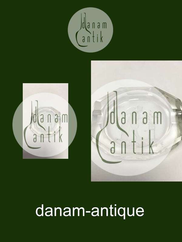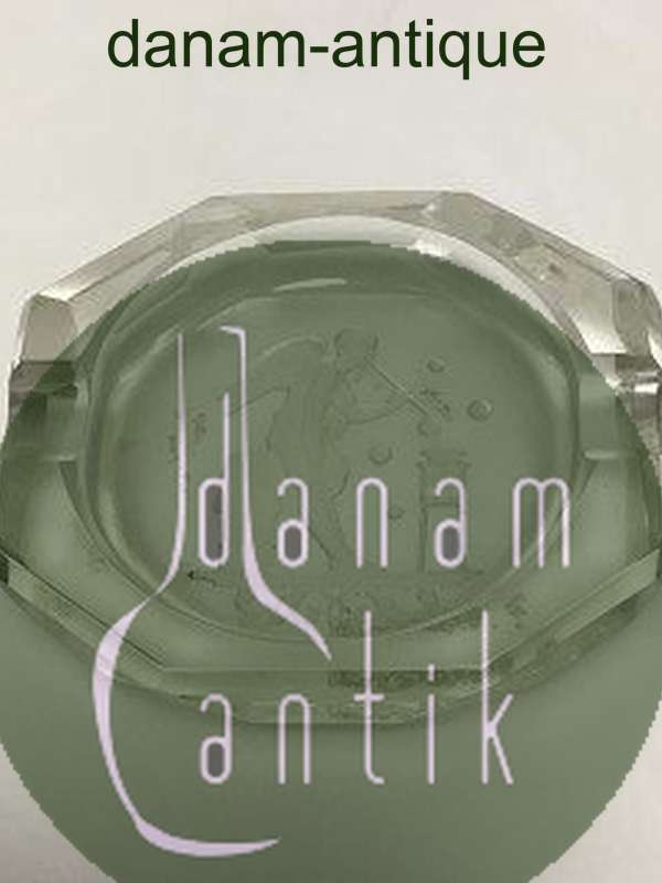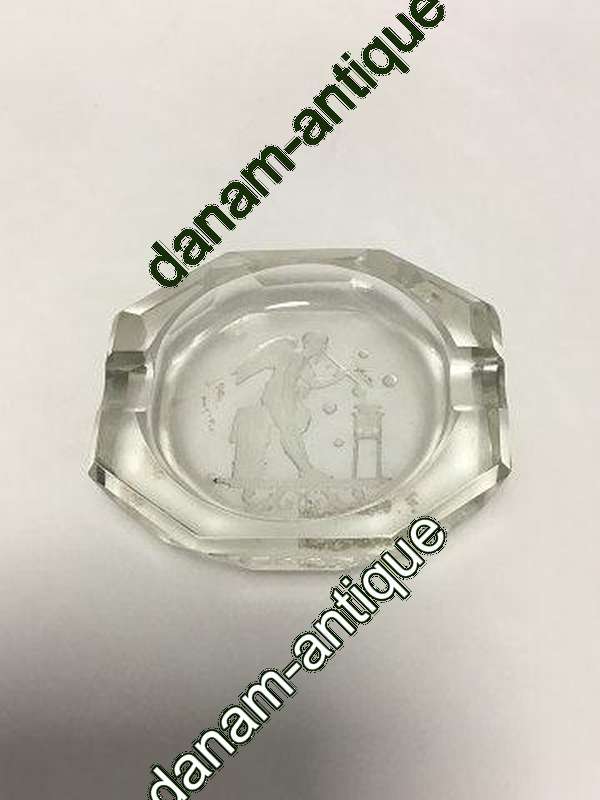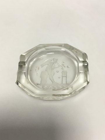Octagonal Miniature ashtray in glass. Etched with a standing angel making soap bubbles. L: 7.5 cm (2 61/64")