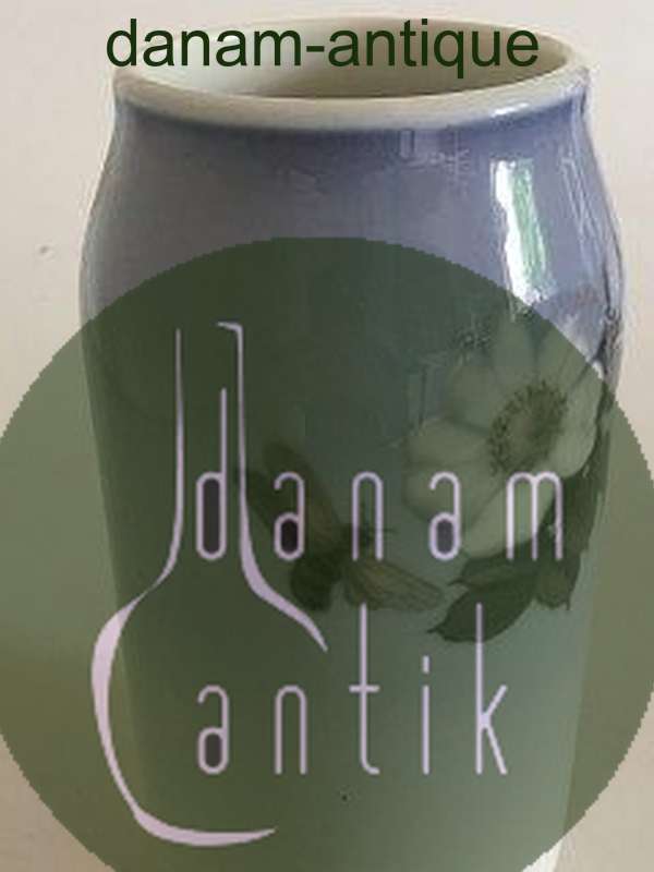 Royal Copenhagen Vase No 693/2304 with a motif of two white roses and a bee. 23 cm H (9 1/16"). 1st Quality, in nice whole condition.