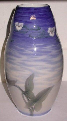Vase in porcelain from B&G 1915-1947. Decorated with waterlilies and the silent water. Signed IHL. Factory first. 23 cm high.