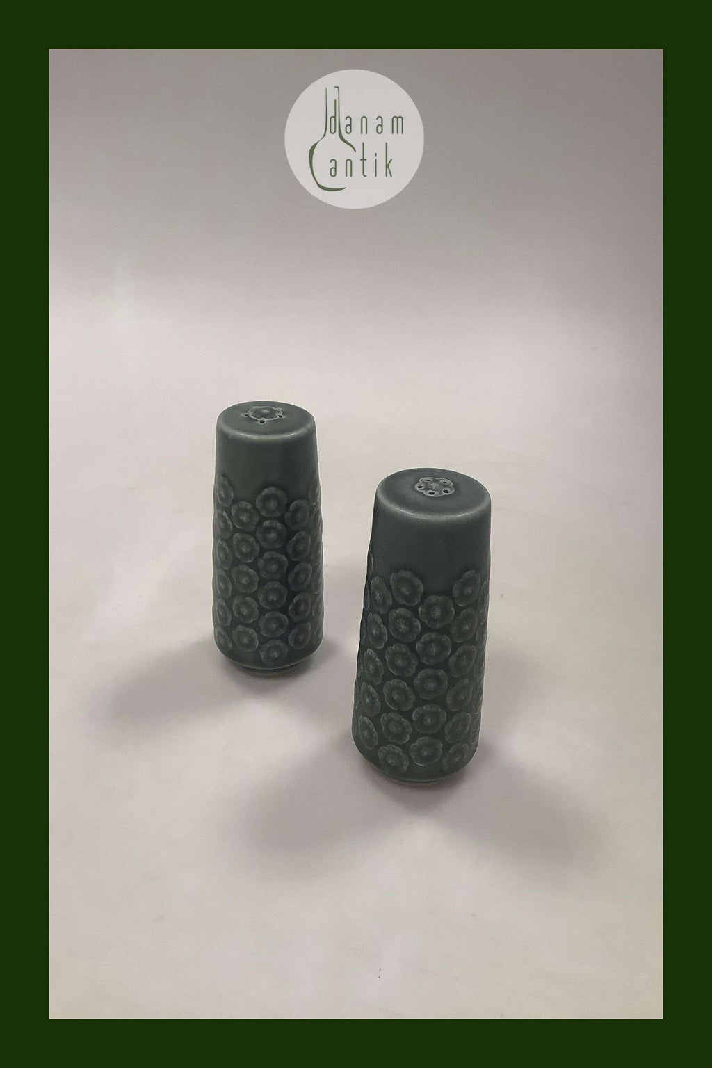 Bing and Grondahl / Kronjyden Green Azur Salt and Pepper Set. Designed by Jens Quistgaard