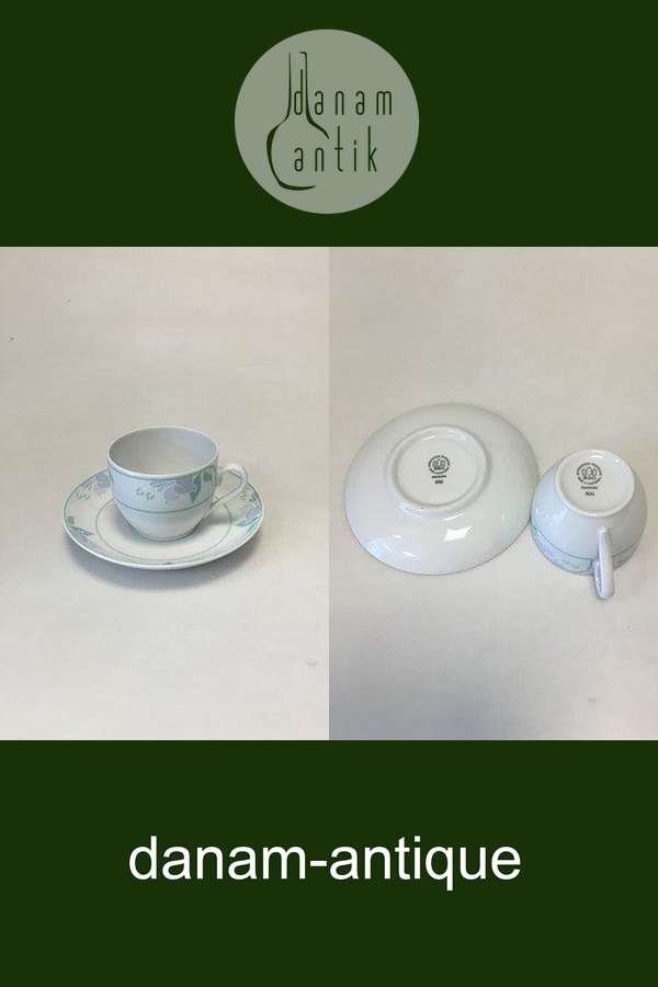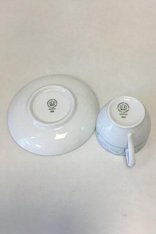 Bing & Grondahl Fleur, Light Blue Coffee Cup and Saucer. Measures Cup: 5.8 cm / 2 9/32 in. x 7 cm / 2 3/4 in. dia. Saucer: 13.7 cm / 5 25/64 in.