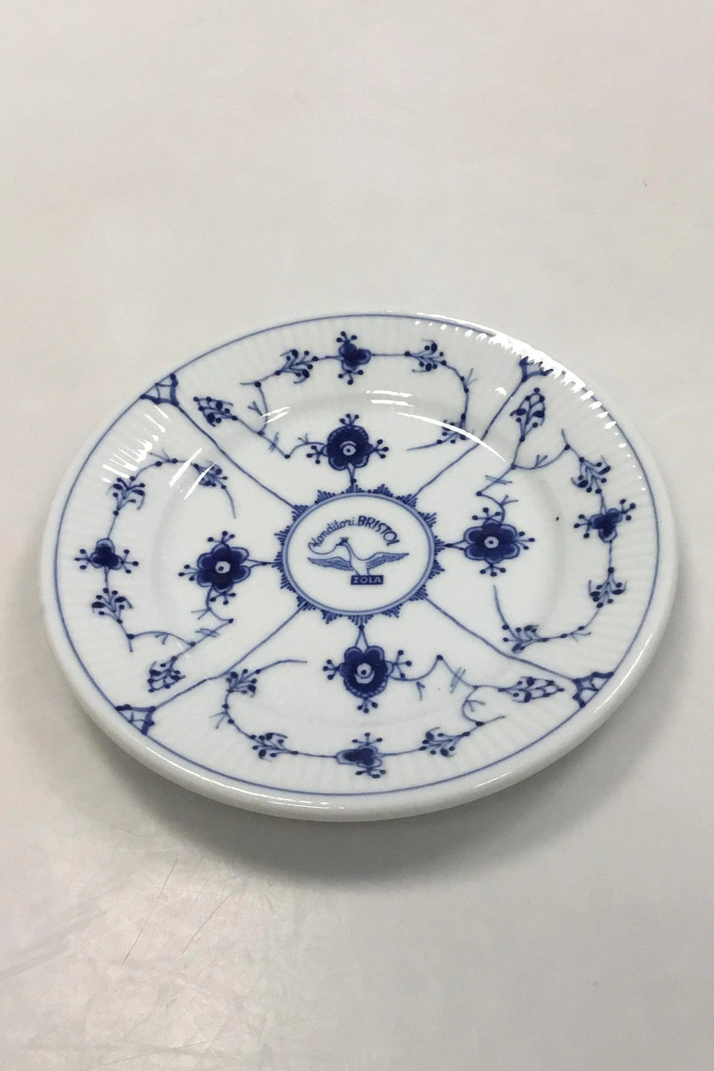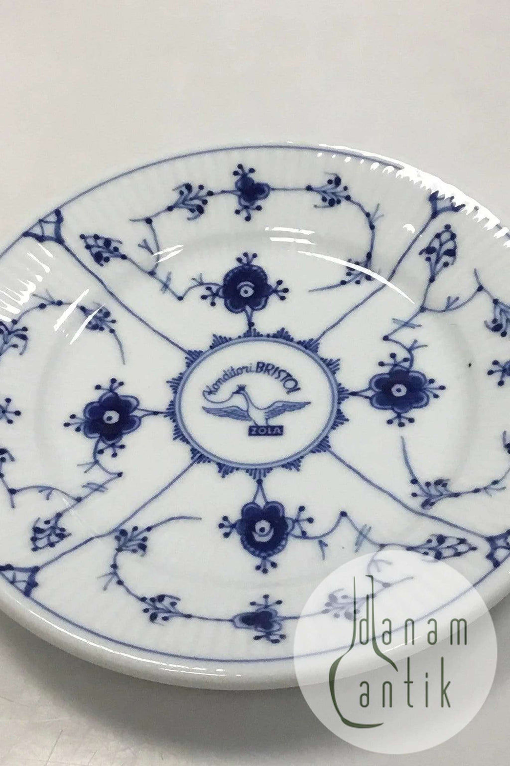 Bing & Grondahl Blue-painted / Blue Fluted Hotel Cake plate No 2002 with Logo from Konditori Bristol Zola. Measures 15.3 cm (6 in.)