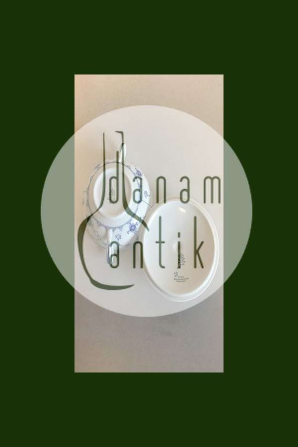 Bing & Grondahl Blue Fluted Bouillon Cup with Lid No 247. Measures 8 cm / 3 5/32 in. x 13 cm / 5 1/8 in.