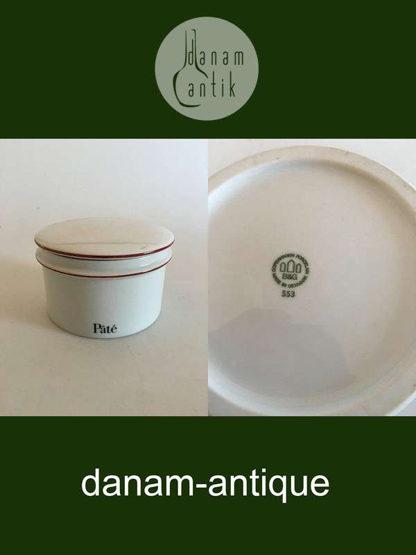 Bing & Grondahl Paté Jar with Lid No 553 from the Apothecary Collection designed by Bo Bonfils in the 1970s. 8.5 x 13.5 cm (3 11/32" x 5 15/16")