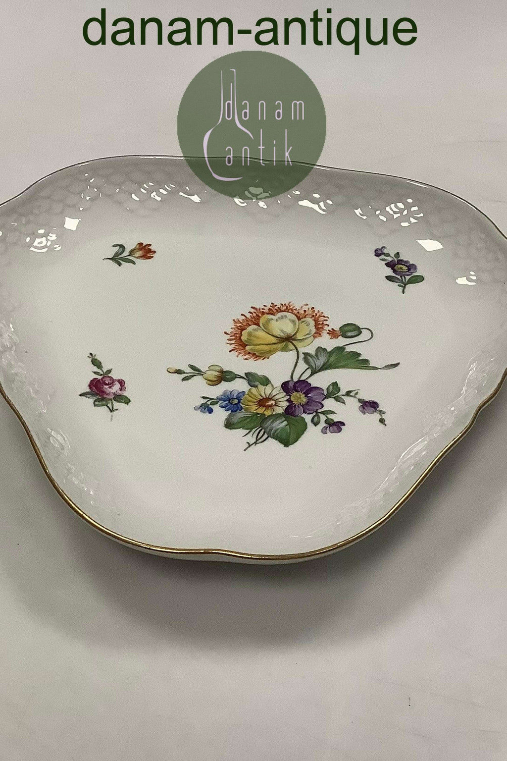Bing and Grondahl Saxon Flower, White Triangular Dish No 40.