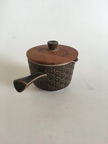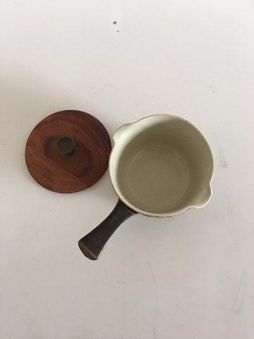 Bing & Grondahl Kronjyden Brown Azur Sauce Pot with Wooden Lid. 8 x 12.5 cm (3 5/32" x 4 59/64")