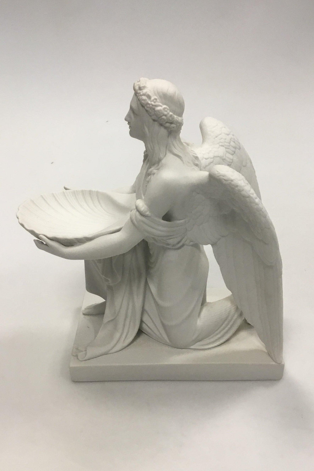 Royal Copenhagen Biscuit figurine 'The Angel of Baptism' after Bertel Thorvaldsen's baptismal font from 1827/28 in the Church of Our Lady in Copenhagen. Measures 19 cm ( 7 31/64 in. )