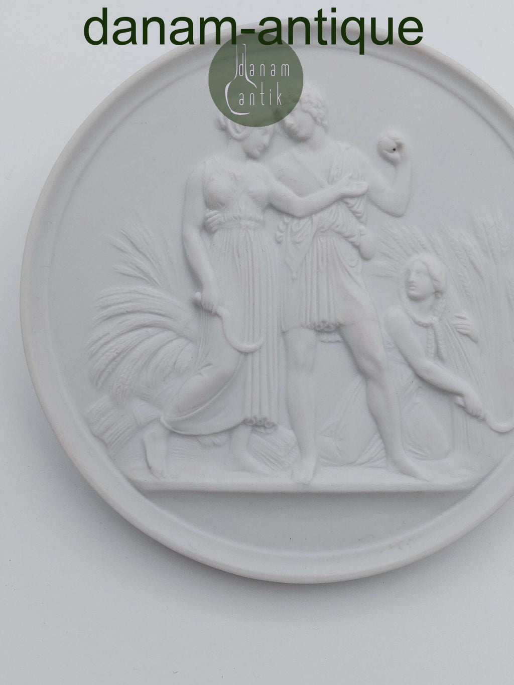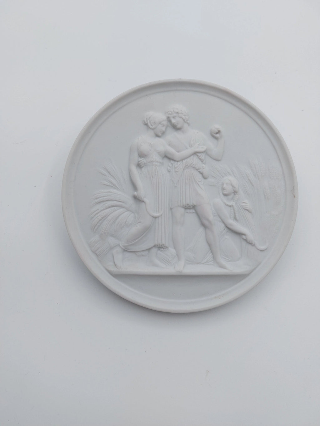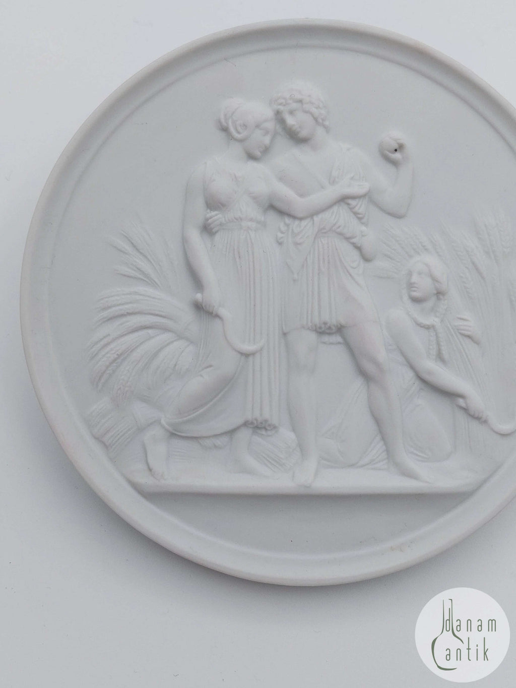 Bertel Thorvaldsen: Bing og Grøndahl bisquit plate "Youth and Spring" After relief modelled in Rome 1836. Measures 14cm (5.51 inch). Made in the 20th century.