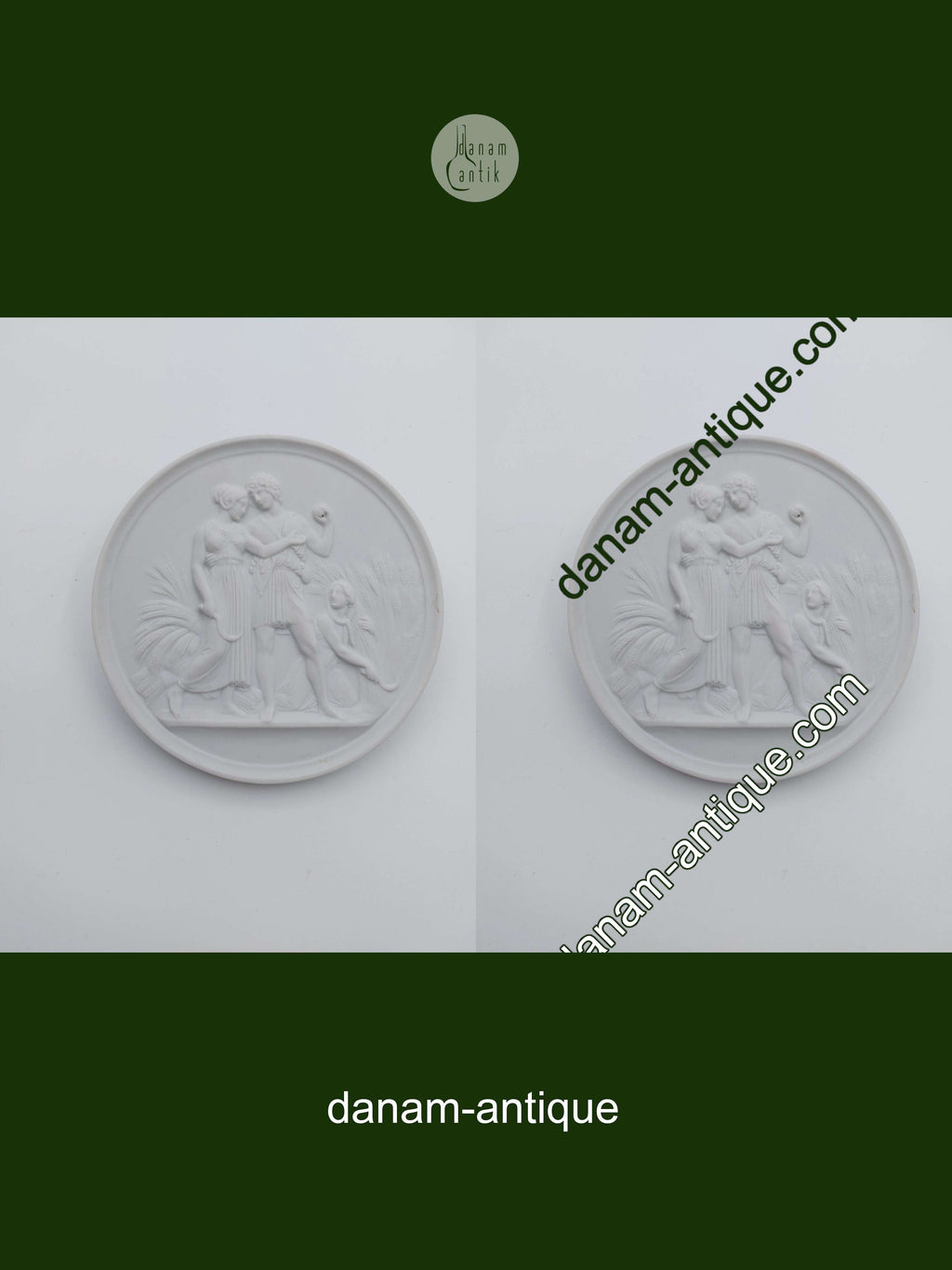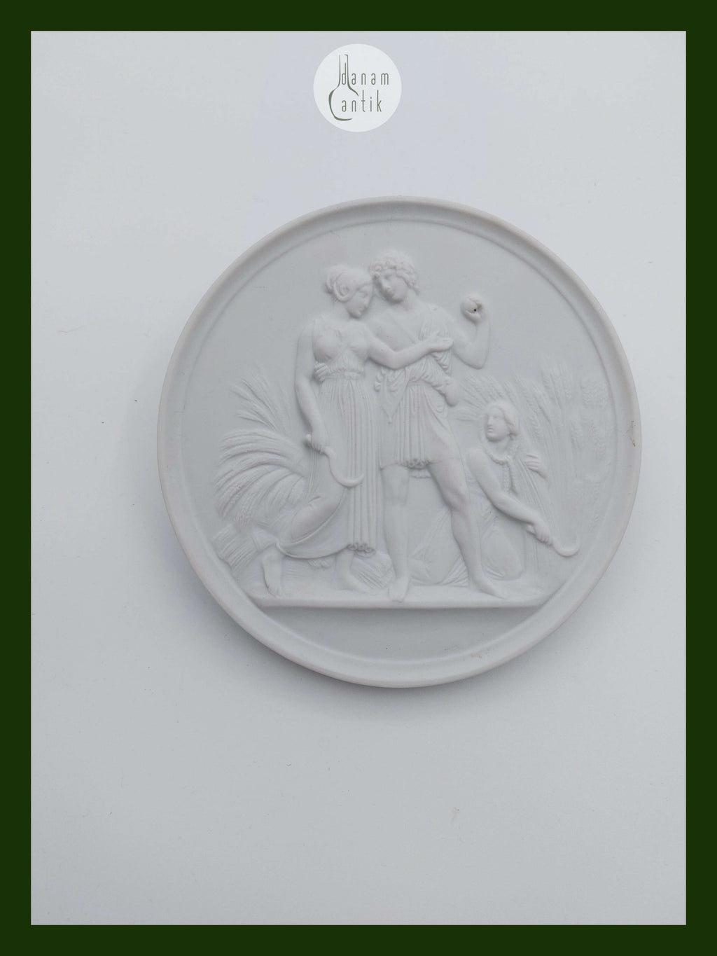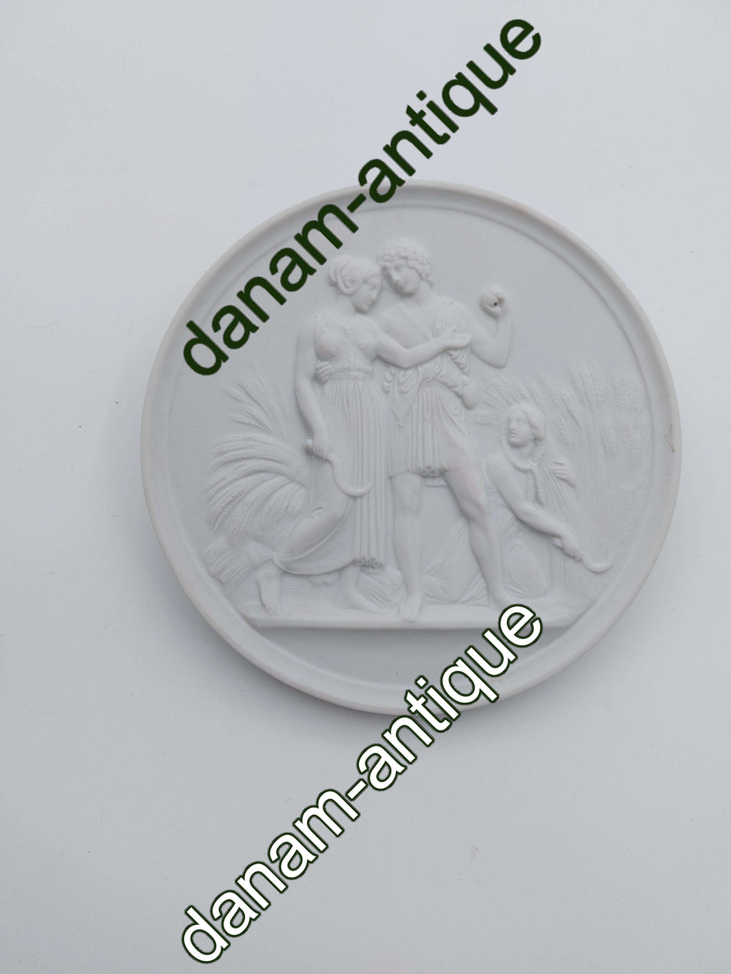 Bertel Thorvaldsen: Bing og Grøndahl bisquit plate "Youth and Spring" After relief modelled in Rome 1836. Measures 14cm (5.51 inch). Made in the 20th century.