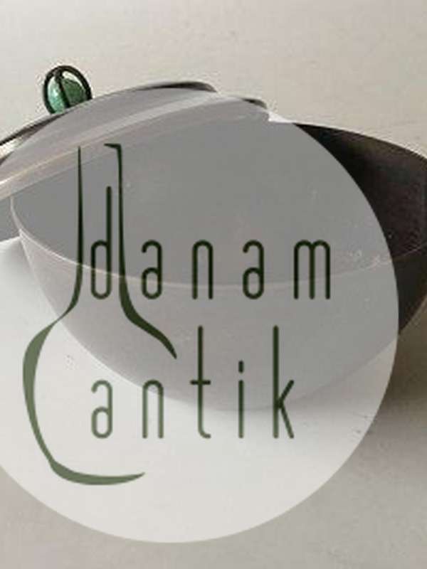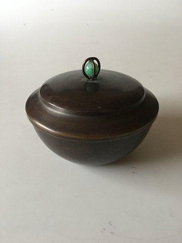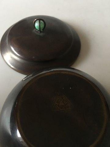 CHR R Bronze Bowl with Lid and Green Glass Stone. Measures 10.5 cm diameter (3 15/16").