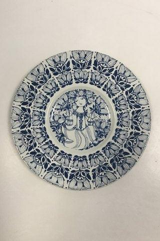 Nymollel Bjørn Wiinblad Faience plate with blue decoration of girl No 3055-1283. Measures 26 cm / 10 15/64 in.