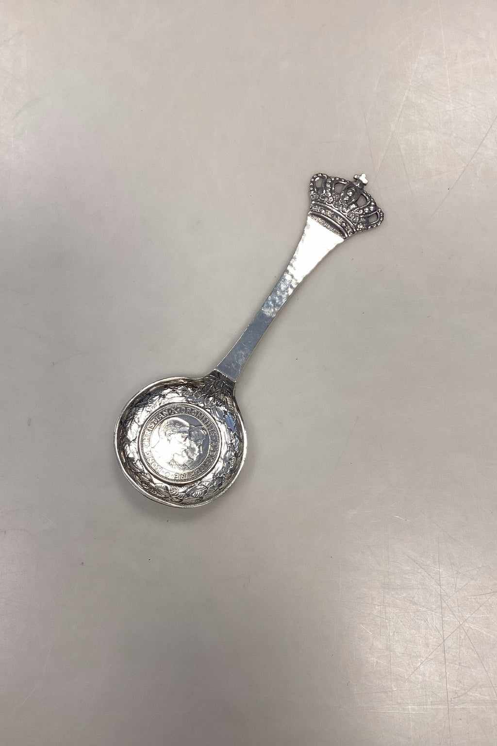 Danish Ornamental Silver Spoon with Commemorative Coin and Crown decoration