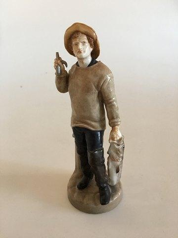 Bing & Grondahl Overglaze Figurine of Fisherman. Measures 19cm. Missing part of hook.