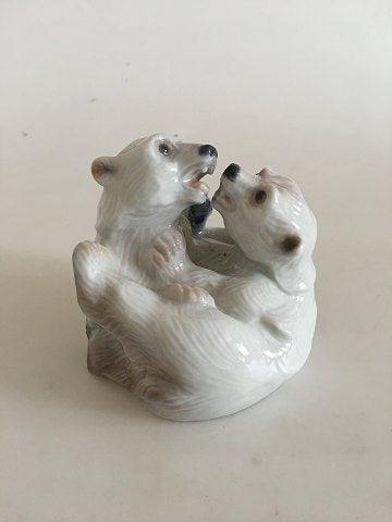 Lyngby Porcelain Figurine of Two Polar Bears Playing No 90A. Measures 10 cm H (3 15/16"). 11.5 cm dia (4 17/32"). 1st Quality. In perfect condition.