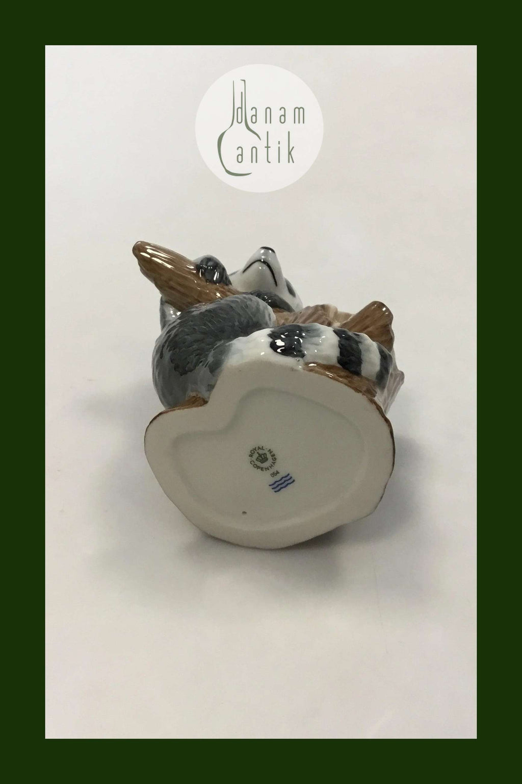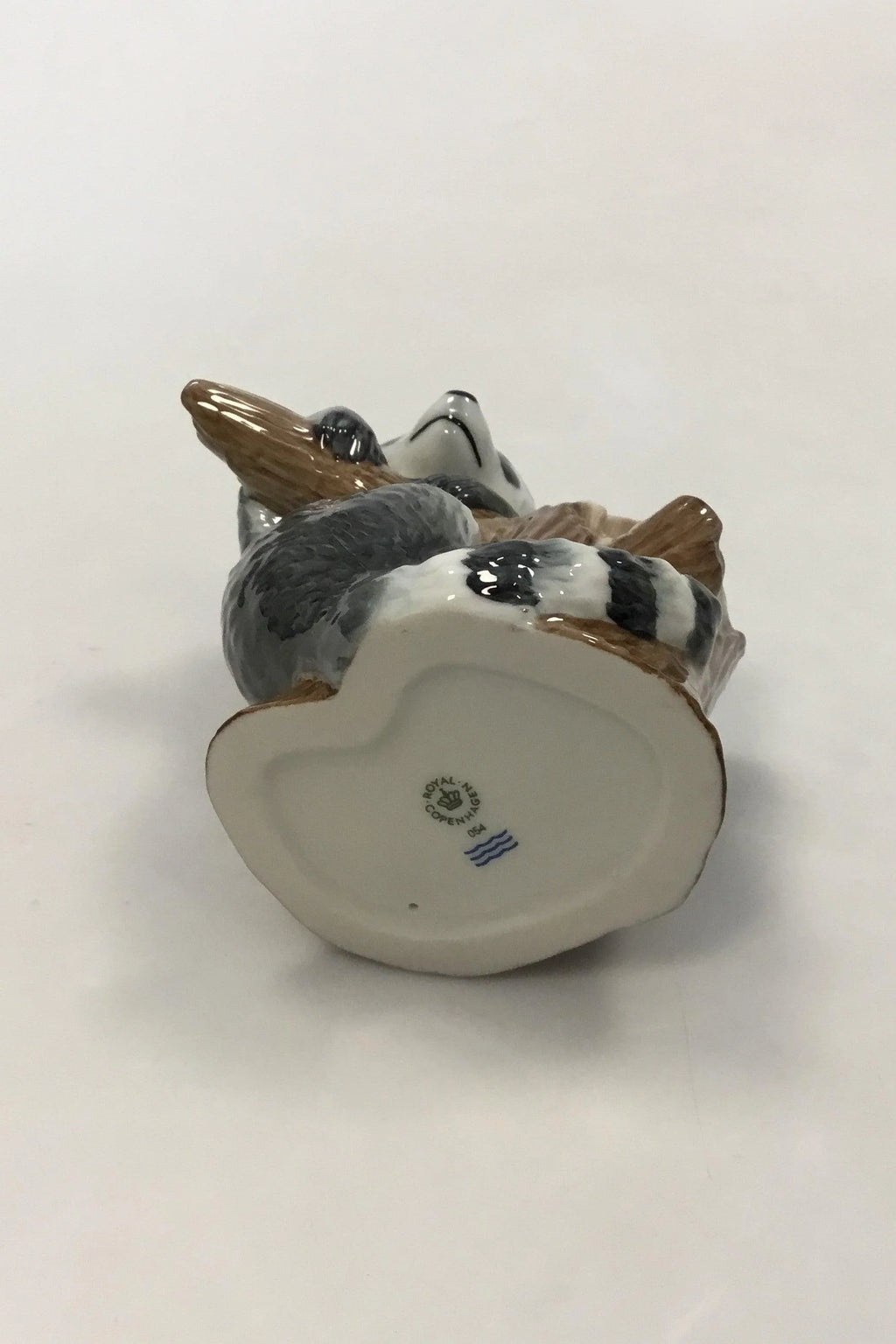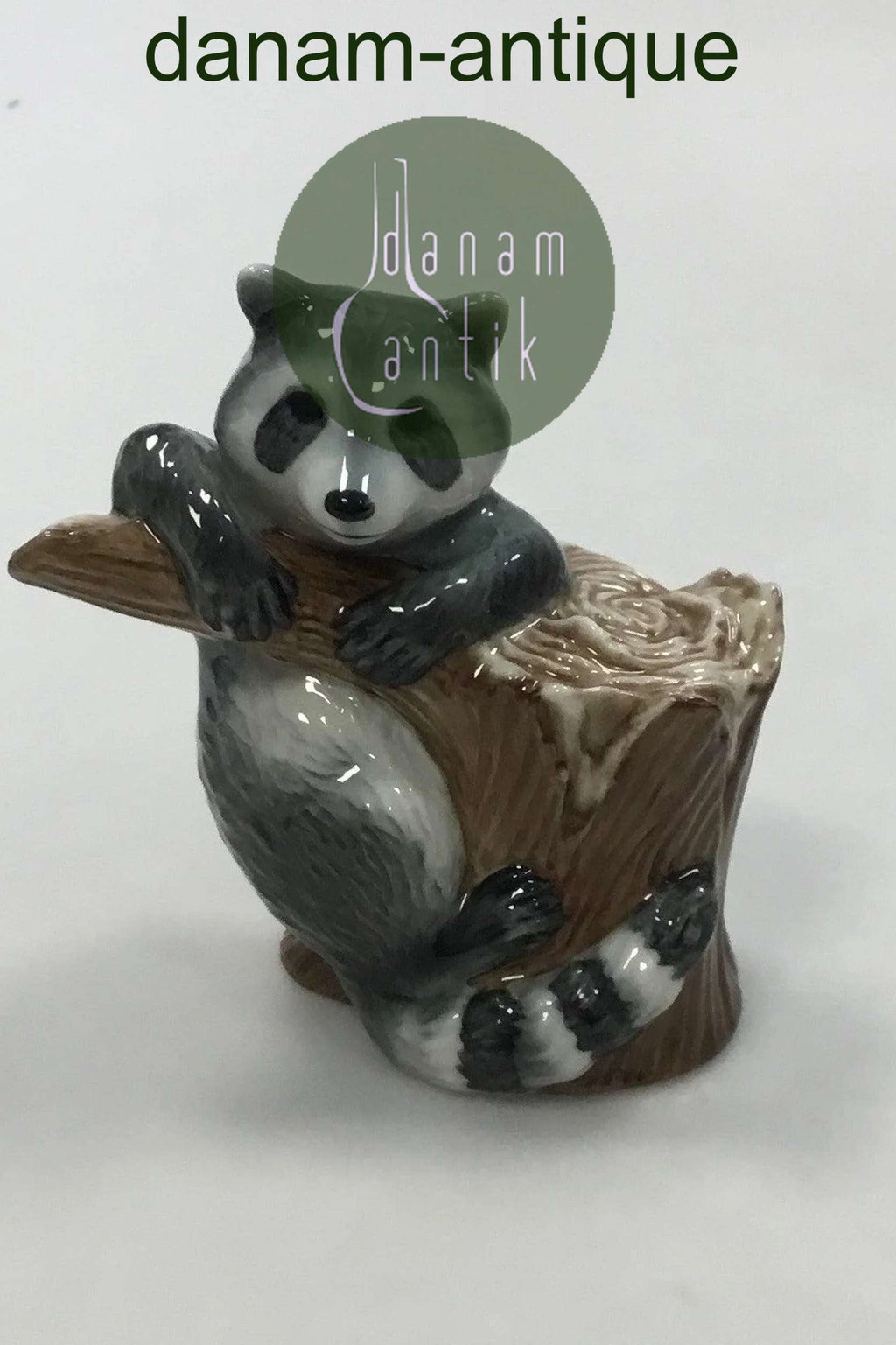 Royal Copenhagen Figurine of Raccoon on tree stump No 054. Designed by Allan Therkelsen. Measures 10 cm (3,15716 in.)