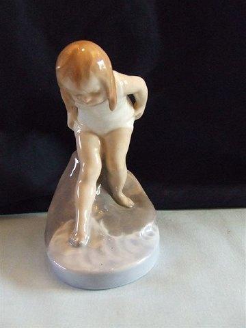 Royal Copenhagen Figurine Bathing Girl No 1229. Designed by Christian Thomsen. Measures 14cm x 8cm and is in good condition. We have 2 variants in stock.