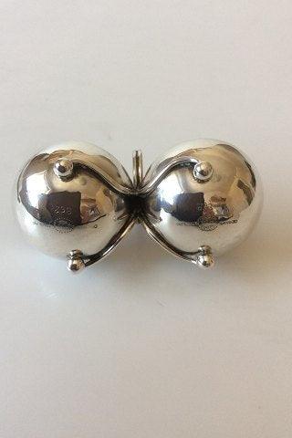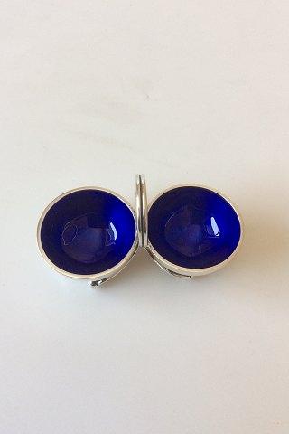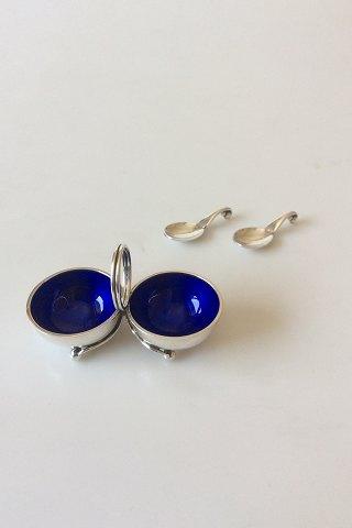 Georg Jensen Sterling Silver/Blue Enamel Double Salt Dish No 862 with two Salt Spoons No 110. Measures 7 x 4 x 3.5 cm / 2 3/4 x 1 37/64 x 1 3/8"