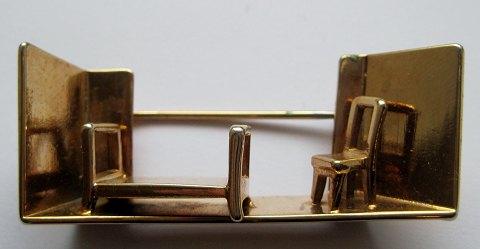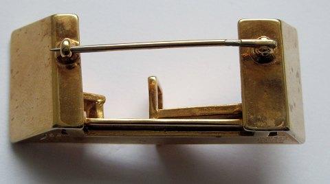 Georg Jensen Modern Brooch in gilded Metal. Very interesting broche, not something that is seen often. Is marked Georg Jensen Design, Denmark, 525L and then the artist signature (se picture). Measures 5,5cm