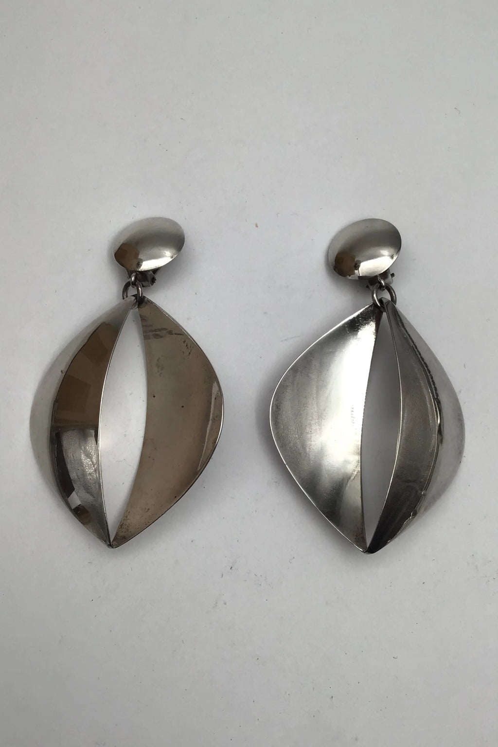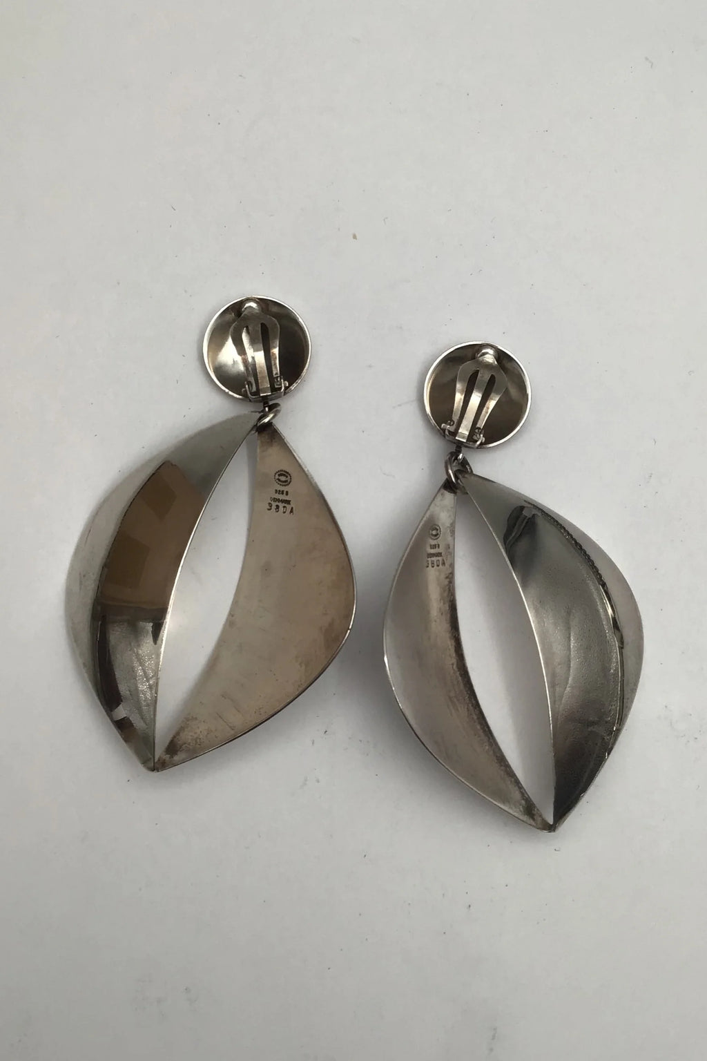 Georg Jensen Sterling Silver Earrings No. 380A (Clips) Measures 8.8 cm x 5.2 cm (3.46 inch x 2.04 inch) Total Weight 33.76 gr (1.19 oz)