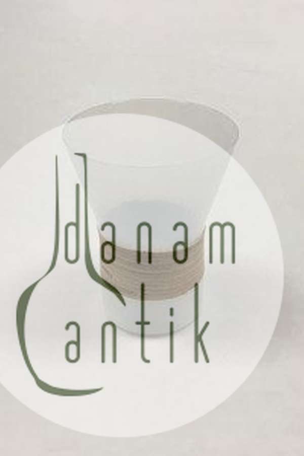 Kastrup Glassworks Opaline Dram Glass with Bamboo. Jacob E. Bang 1957. Measures 8.9 cm / 3 1/2 in.