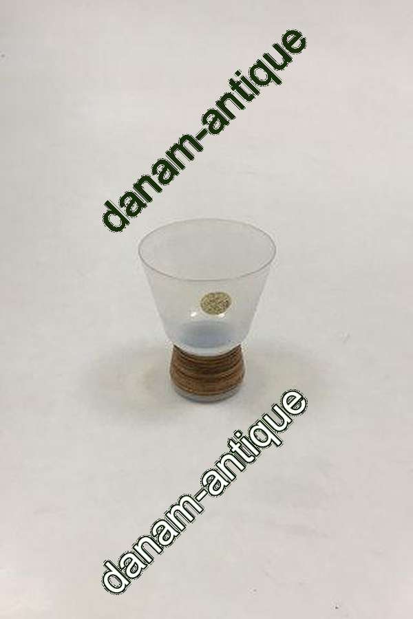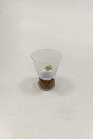 Kastrup Glassworks Opaline Dram Glass with bamboo wrapping. Jacob E. Bang 1957. Measures 8 cm / 3 5/32 in.