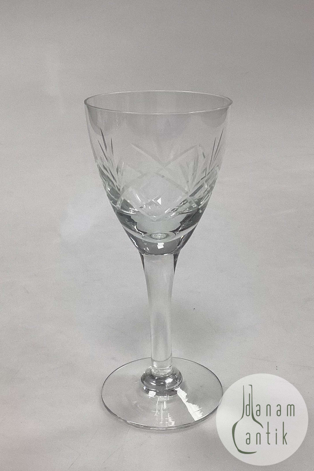 Holmegaard Ulla mulled wine glass. Measures 12.5 cm / 4.92 in. Glass with cross and cut grinding on smooth stem.