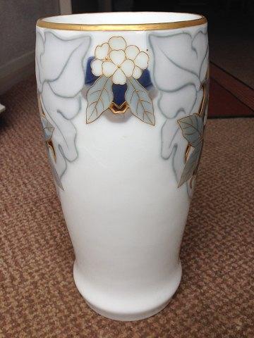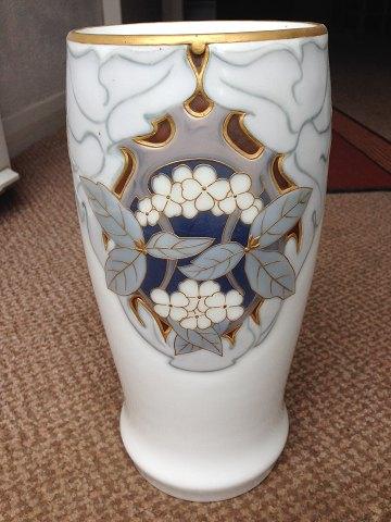 Bing and Grondahl Art Nouveau Unique vase by Elisabeth Drews Kofoed with gold and enamel glaze. Measures 27,5cm and is in perfect condition.