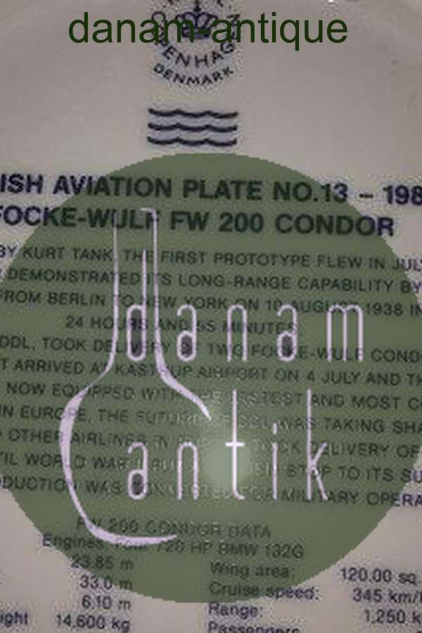 Danish Aviation Plate No.13 - 1988 Focke-Wulf FW 200 Condor "Jutlandia" FW200 1938 DDL 1988.