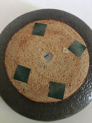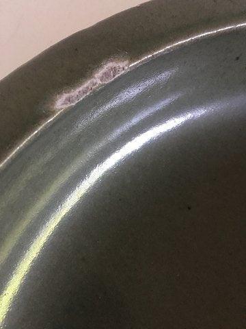 Royal Copenhagen Alev Siesbye Ceramic Bowl. Olive Green. Measures 33 cm diameter (12 63/64"). 7.5 cm H (2 61/64"). The border is chipped (look at picture)