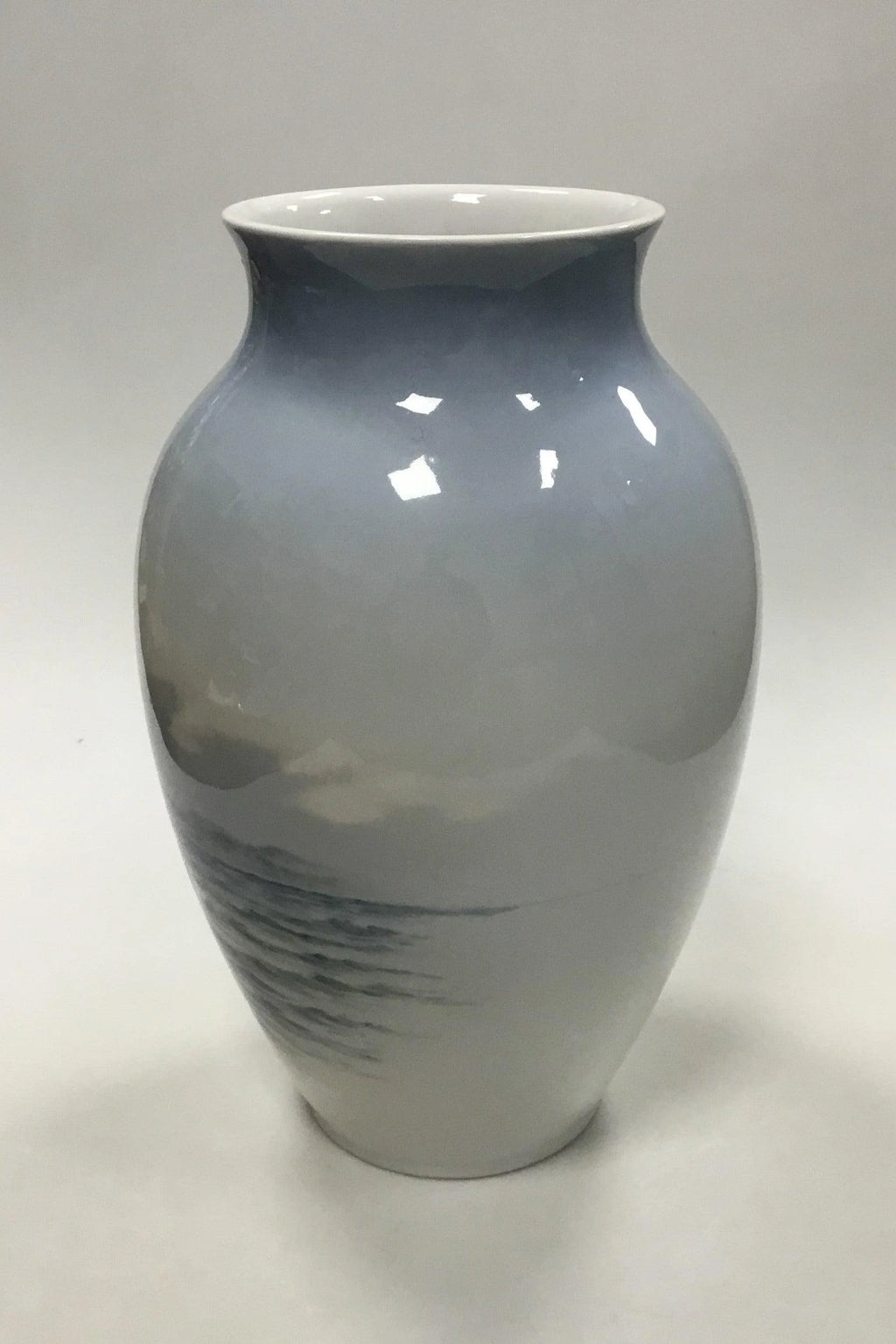 Royal Copenhagen Art Nouveau Vase with sailing ship No 2869/4044. Measures 33 cm (13 in.)