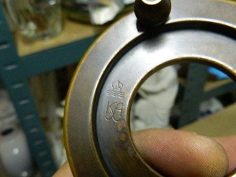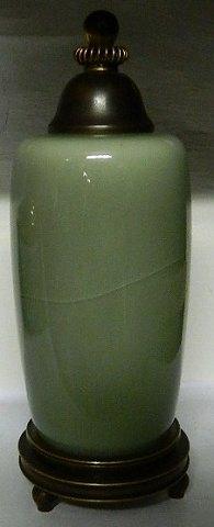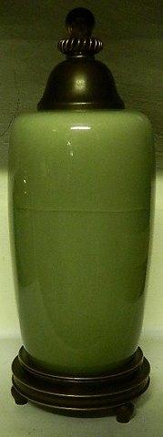 Royal Copenhagen Celedon Vase with Bronce stand and lid by Knud Andersen. The vase has cracks underneanth the glaze, so pictures.